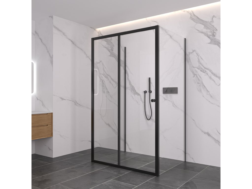 CERANO - Trostenný sprchovací kút Varone POINT UL/P - 6 mm - čierna matná, transparentné sklo - 150x70x195 cm - posuvný