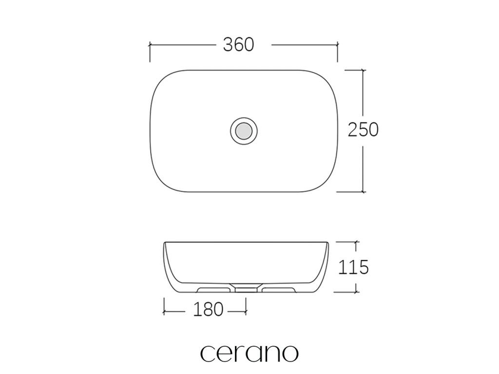 CERANO - Umývadlo keramické Carlo - na dosku - biela lesklá - 36x25 cm