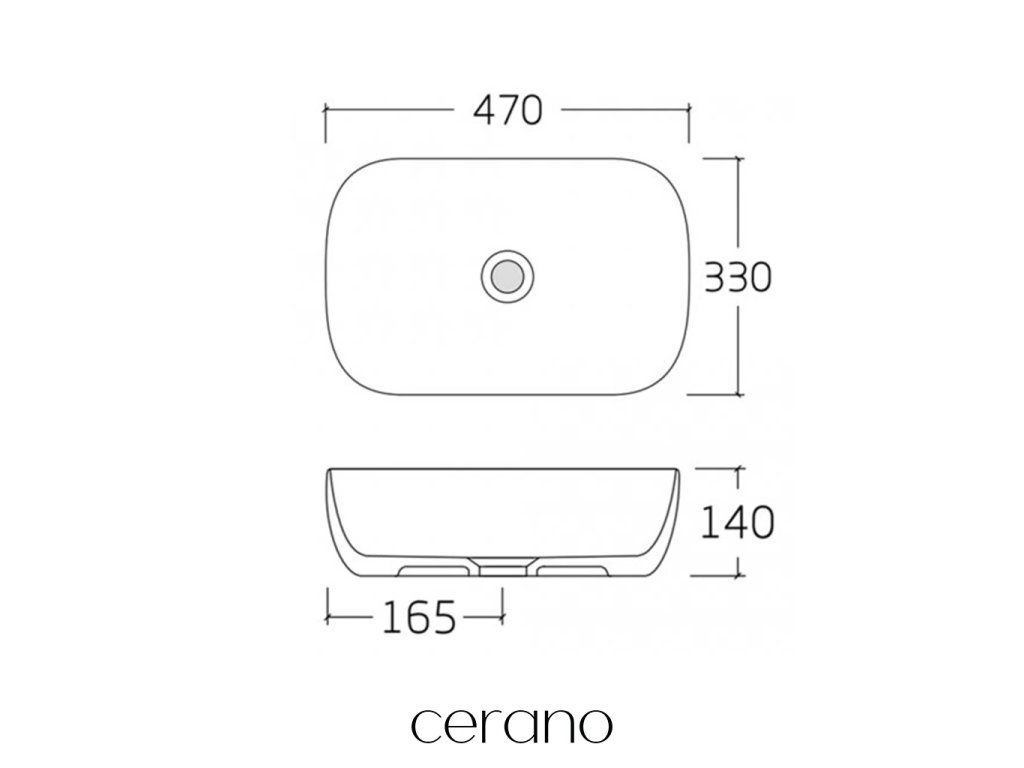 CERANO - Umývadlo keramické Lino - na dosku - biela lesklá - 47x33 cm