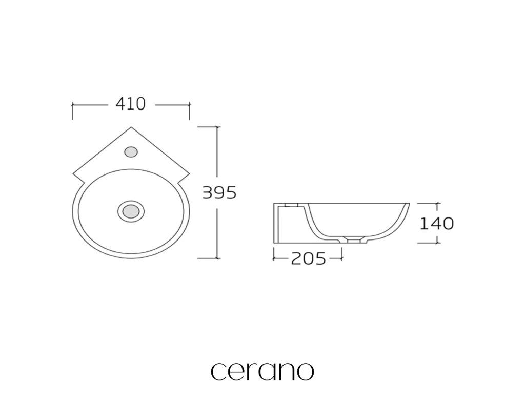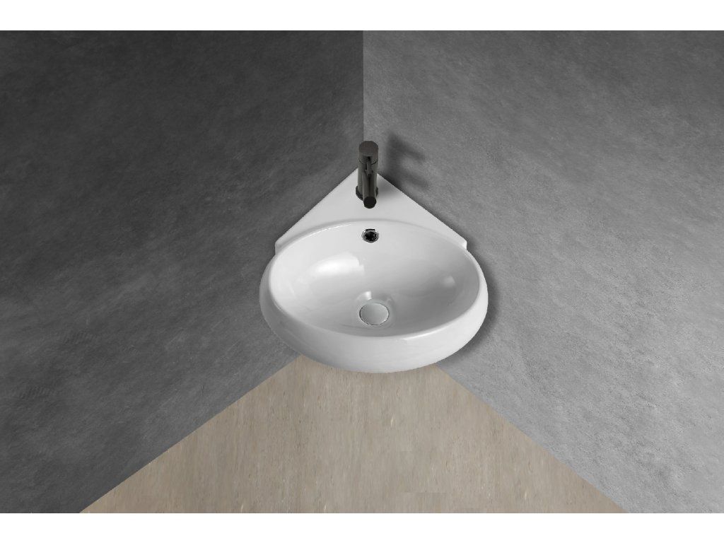 CERANO - Umývadlo keramické - nástenné, rohové - Livia - biela lesklá - 41x39,5 cm