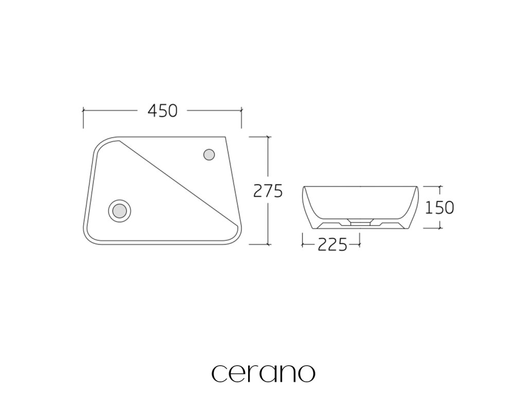 CERANO - Umývadlo keramické - nástenné aj na dosku - Tropea - biela lesklá - 45x27,5 cm