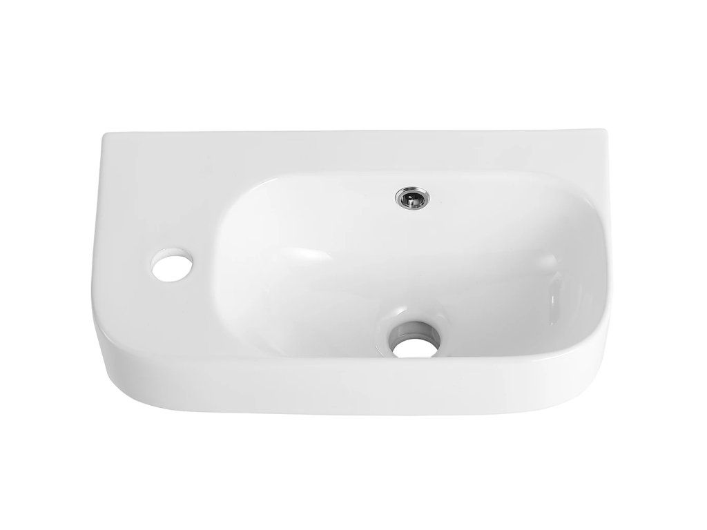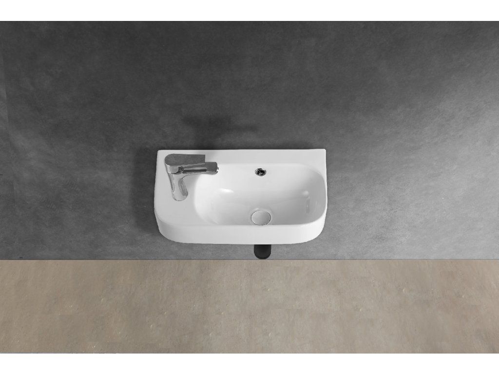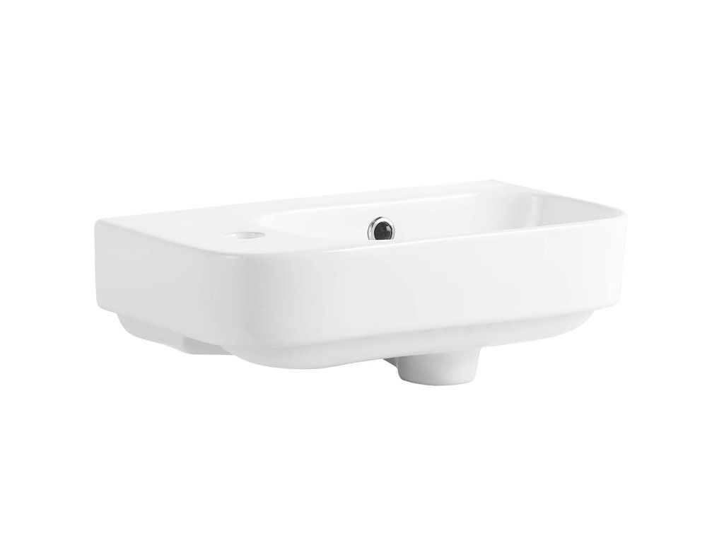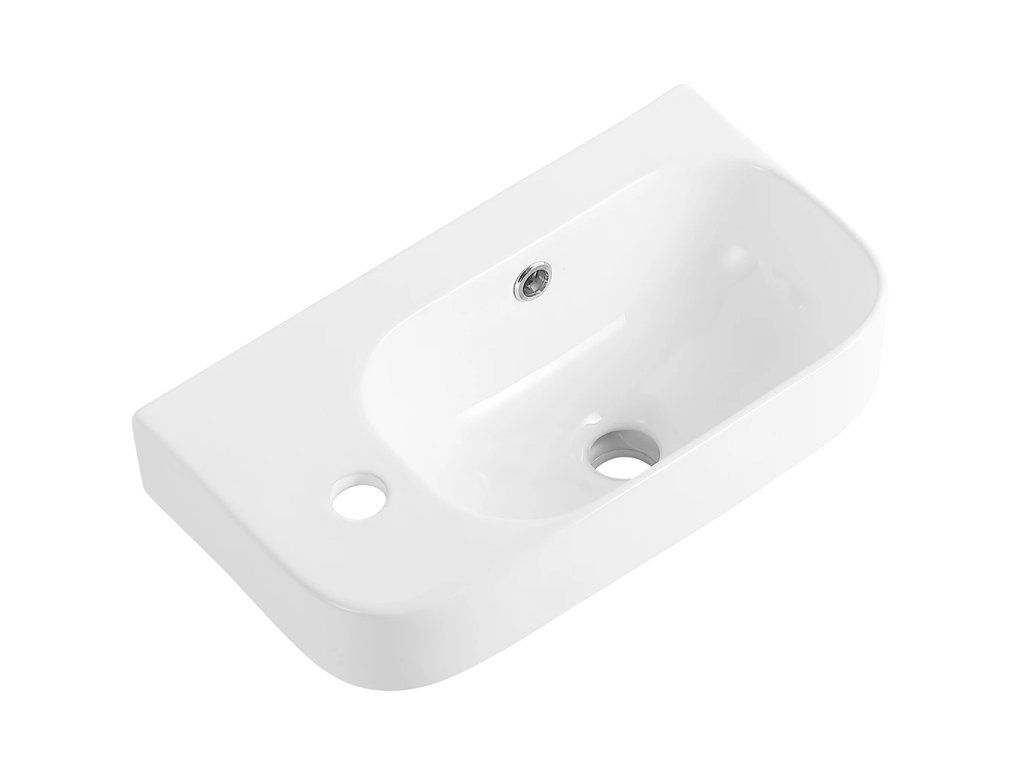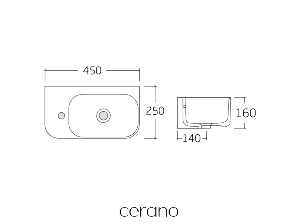 CERANO - Umývadlo keramické - nástenné - Arco - ľavá - biela lesklá - 45x25,5 cm