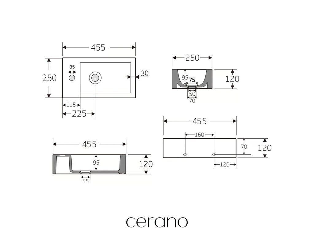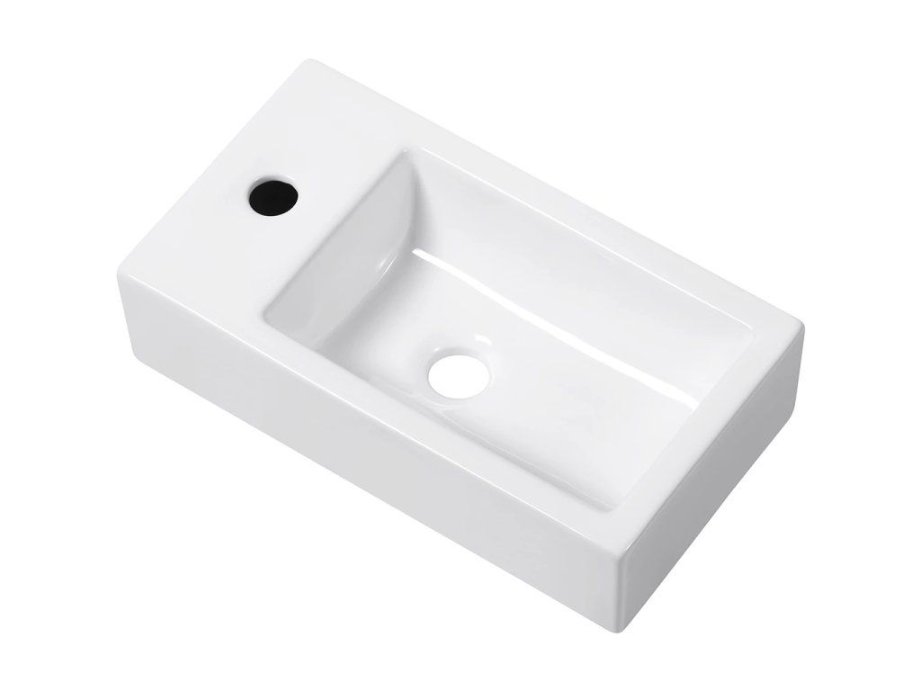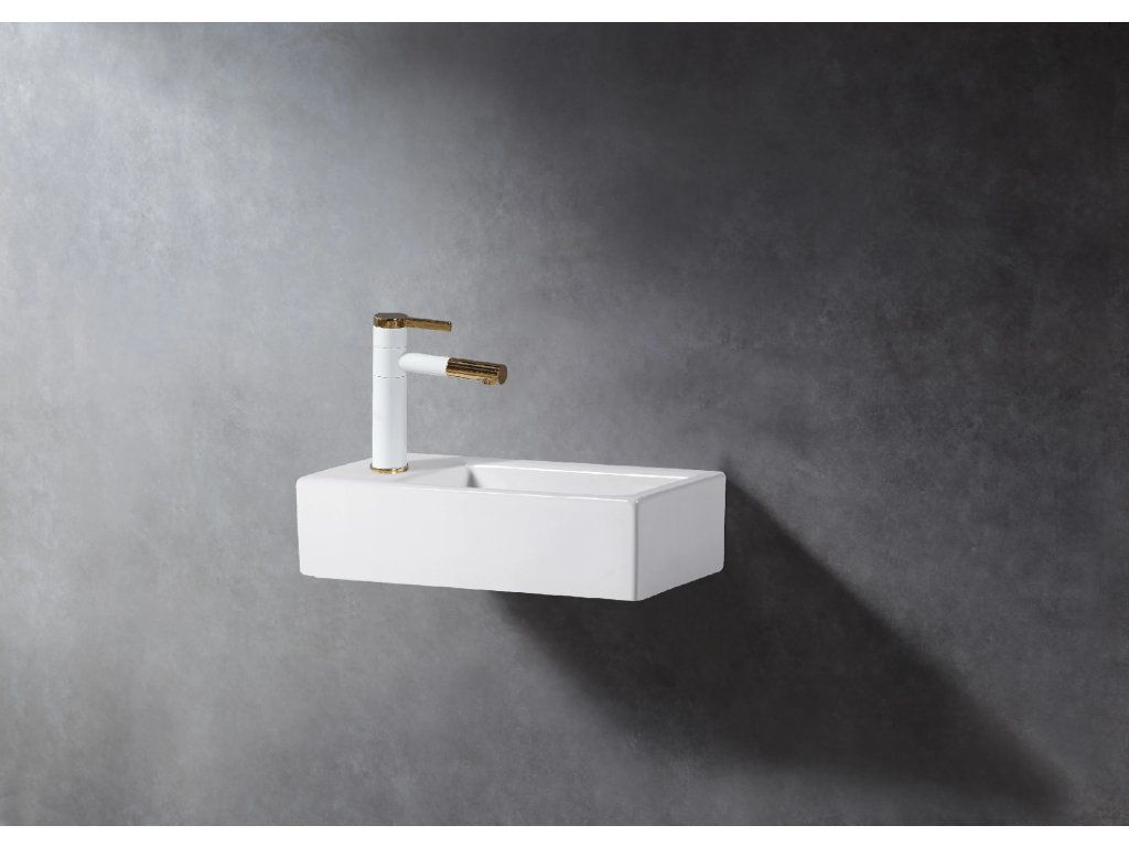 CERANO - Umývadlo keramické Vivo - závesné ľavé - biela lesklá - 45,5x25 cm