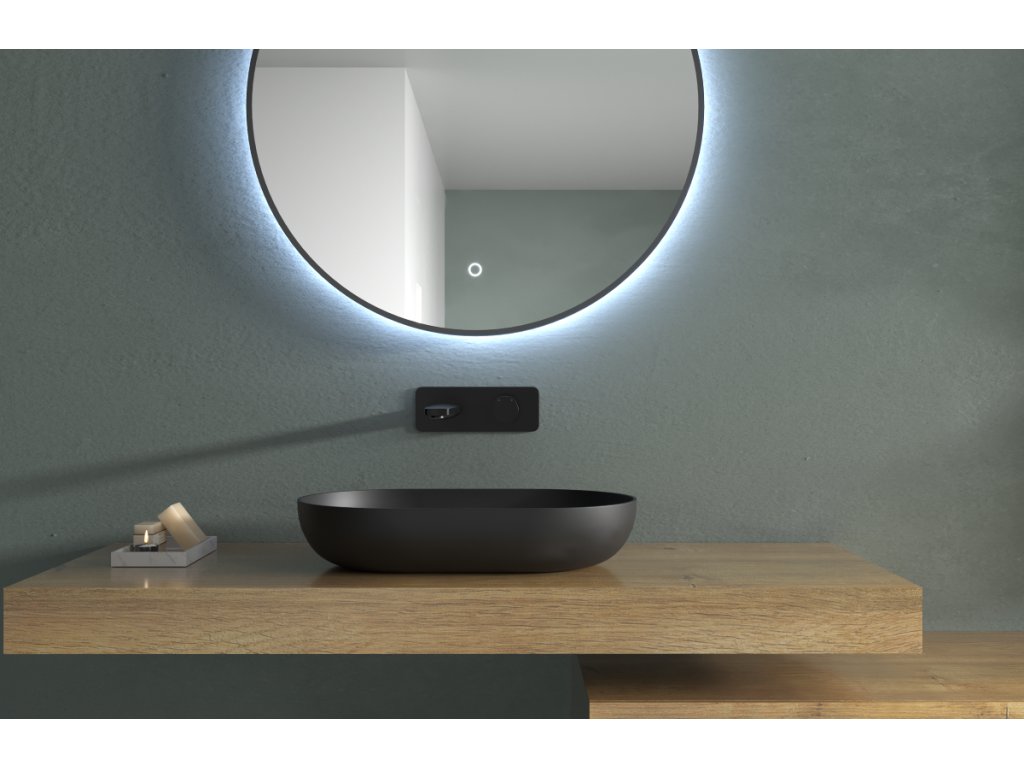 CERANO - Umývadlo z liateho mramoru Atria - na dosku - čierna matná - 60x40 cm