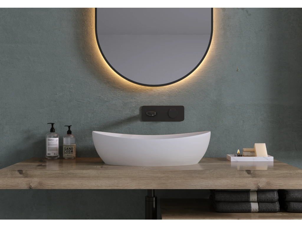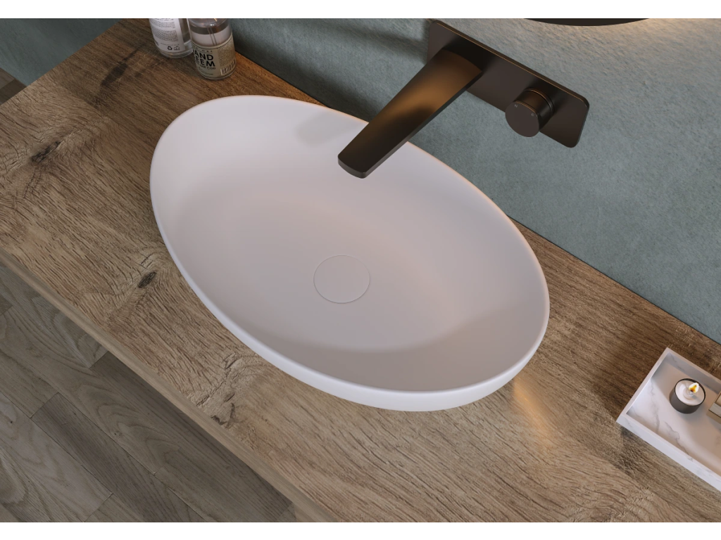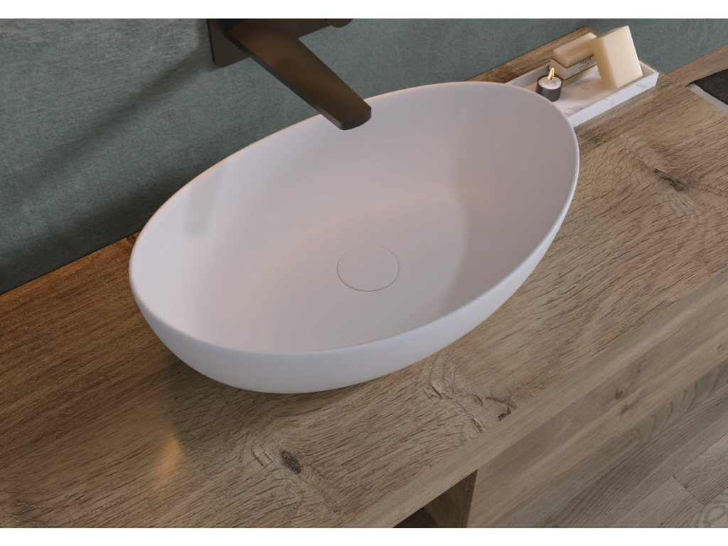 CERANO - Umývadlo z liateho mramoru Gaia - na dosku - biela matná - 55,5x35 cm