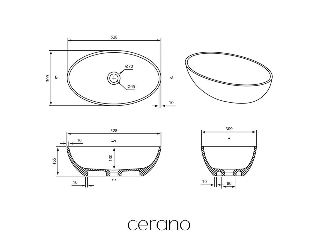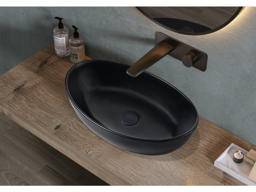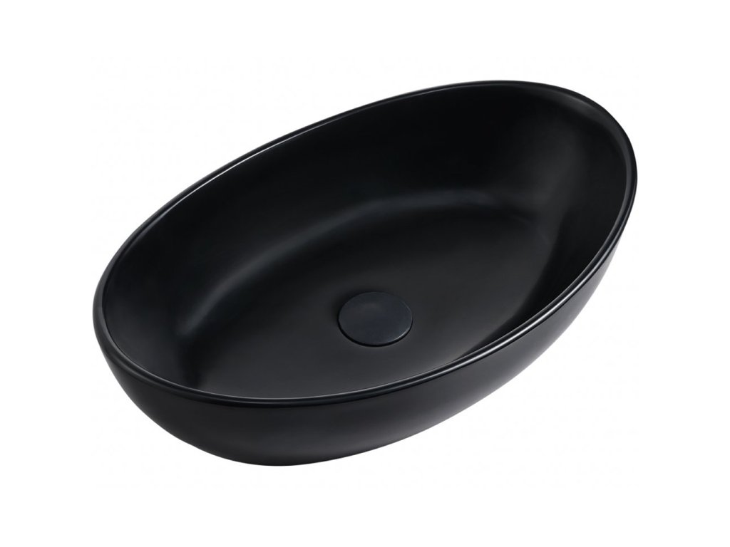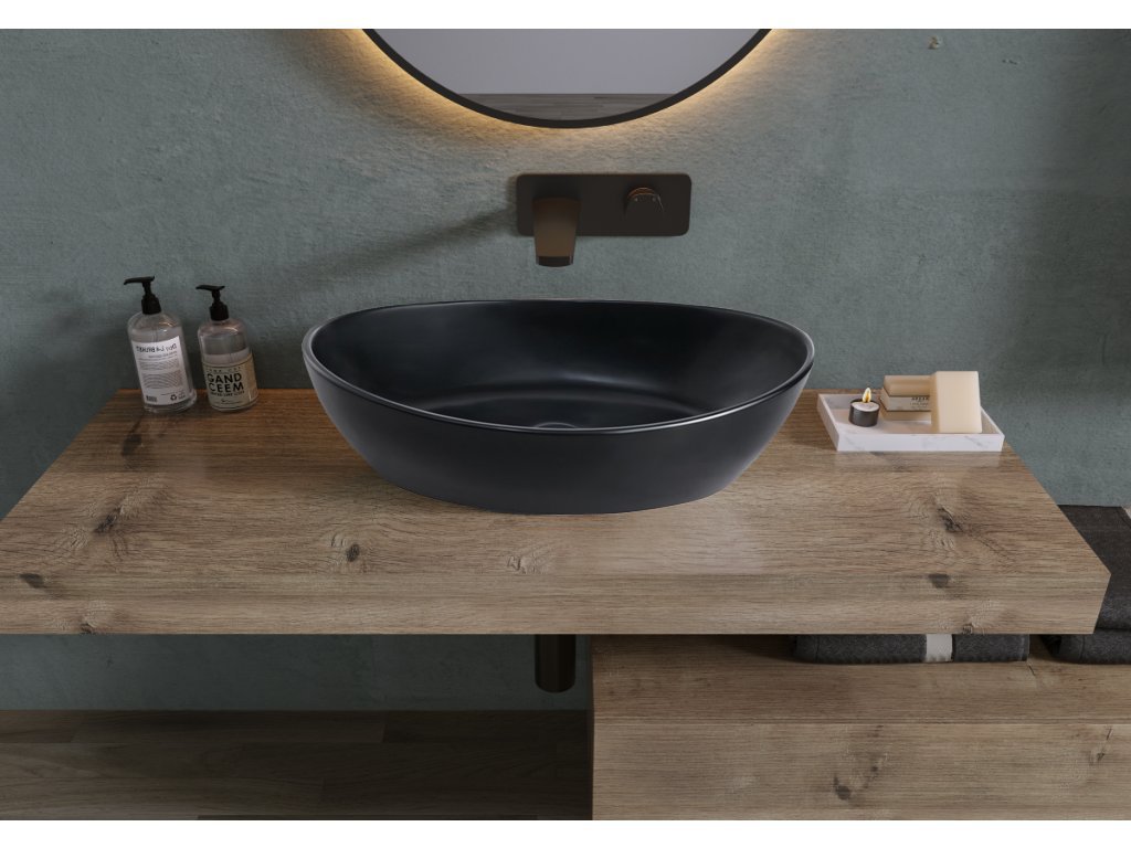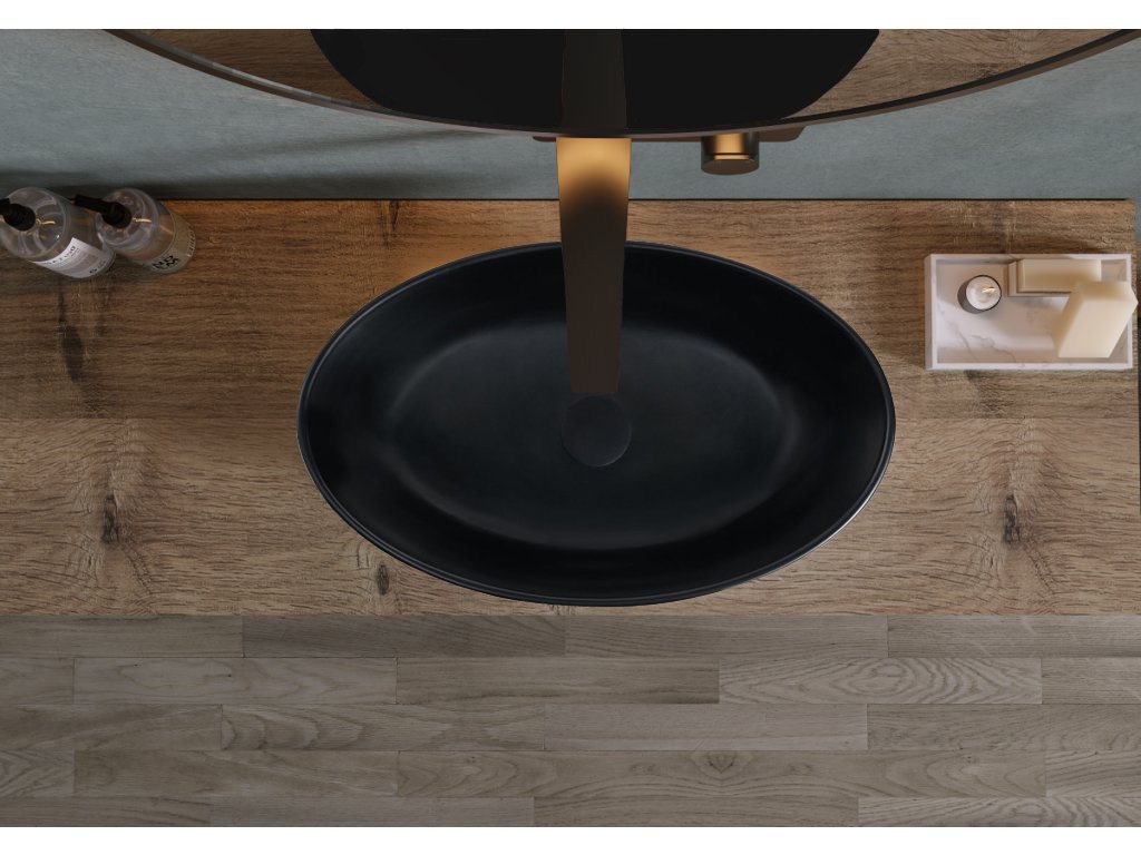 CERANO - Umývadlo z liateho mramoru Luna - na dosku - čierna matná - 52,8x30,9 cm