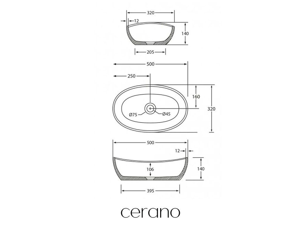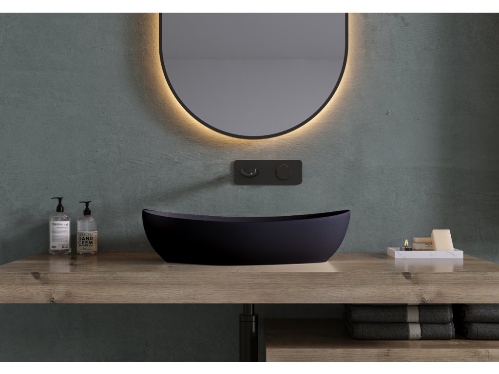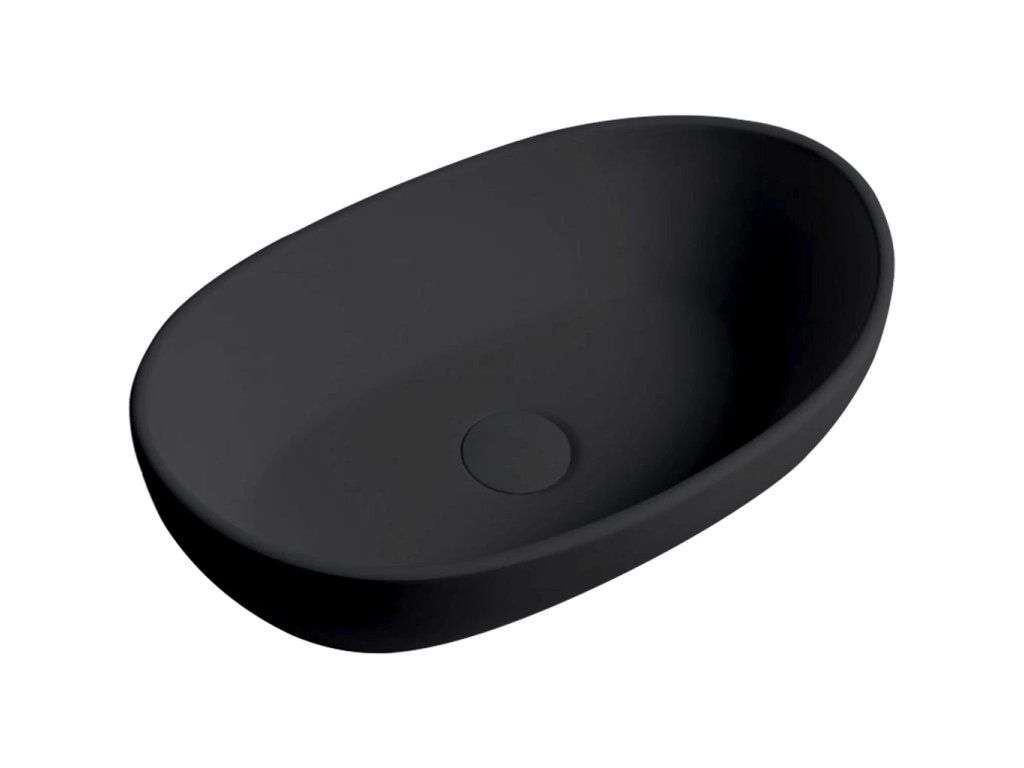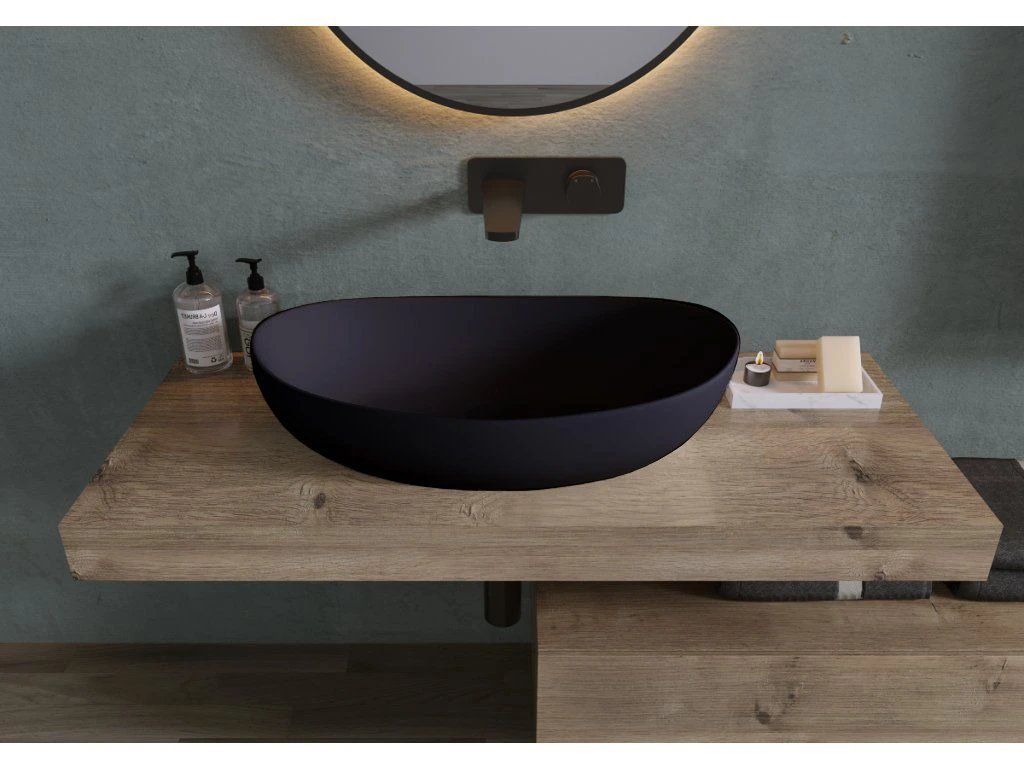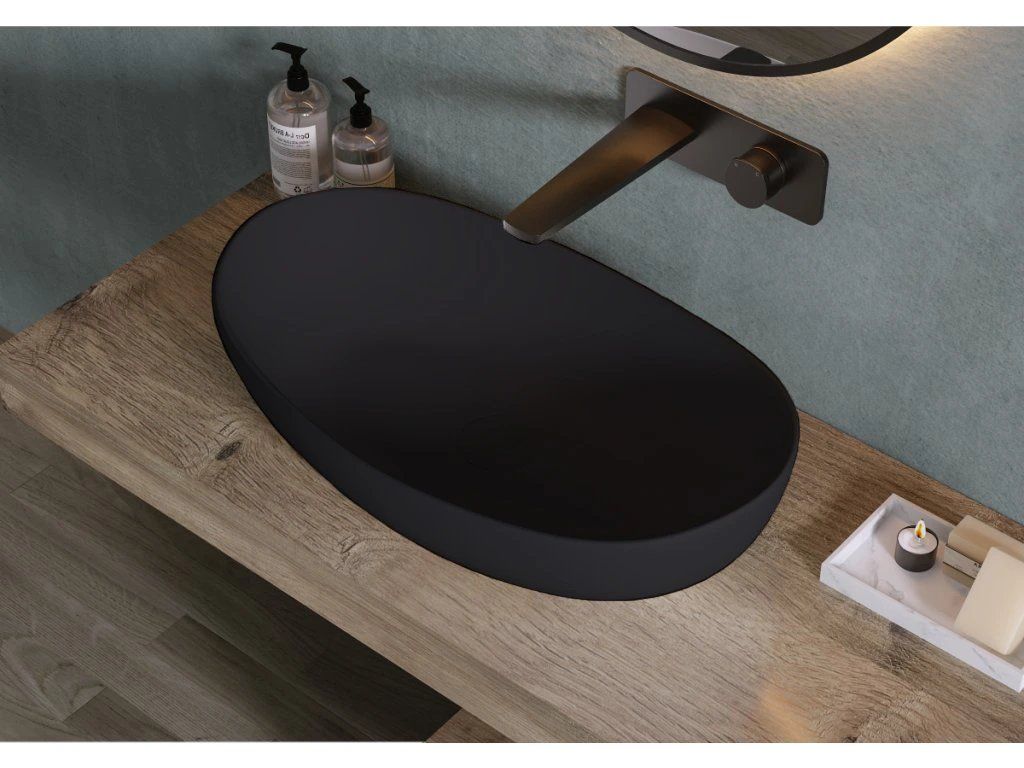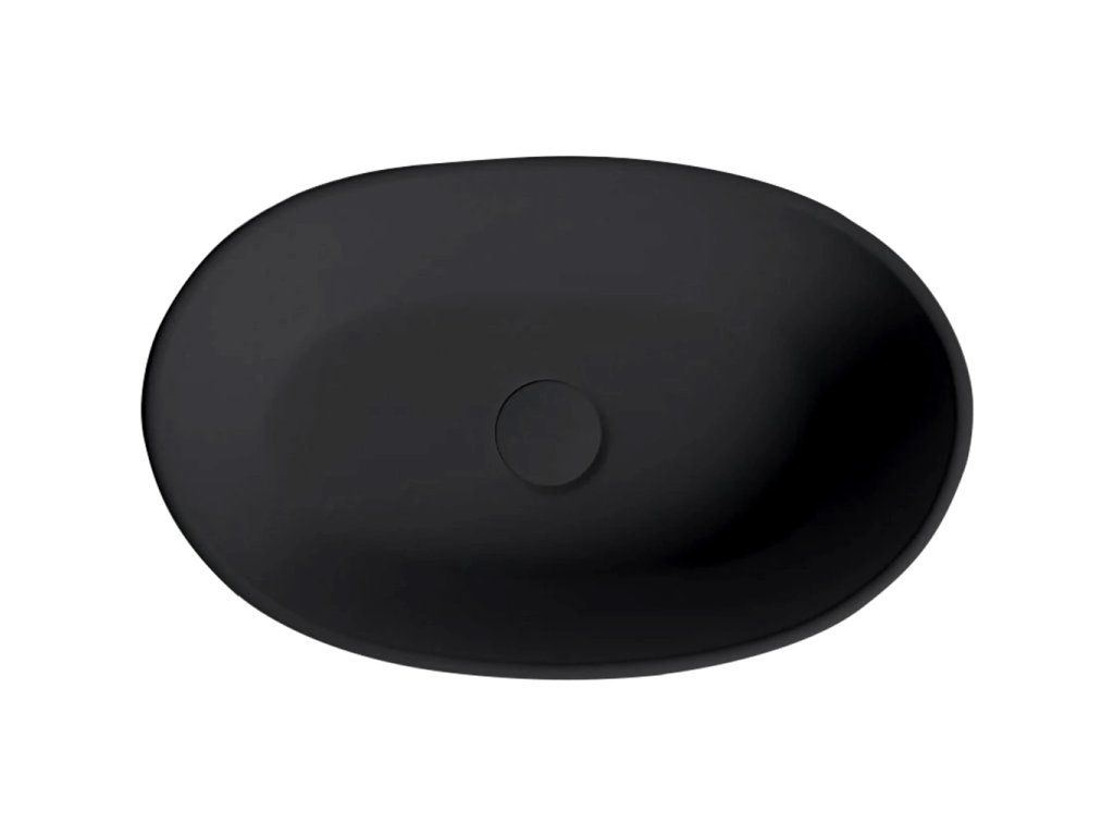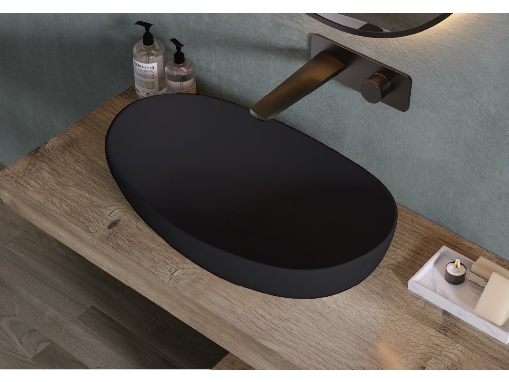 CERANO - Umývadlo z liateho mramoru Persea - na dosku - čierna matná - 50x32 cm