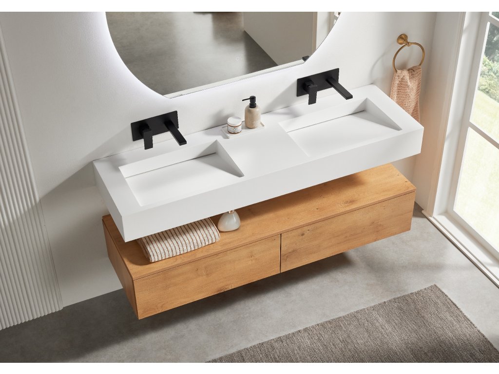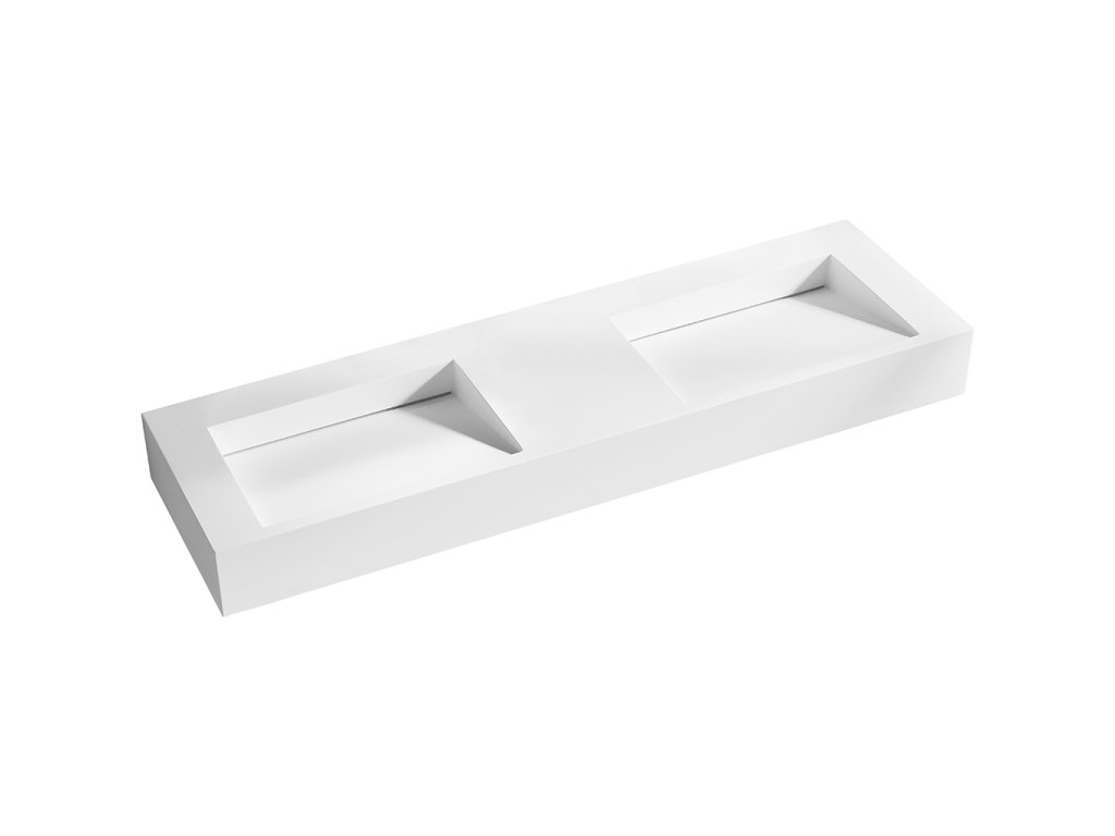 CERANO - Umývadlo z liateho mramoru Piano - nástenné - biela matná - 153x44 cm