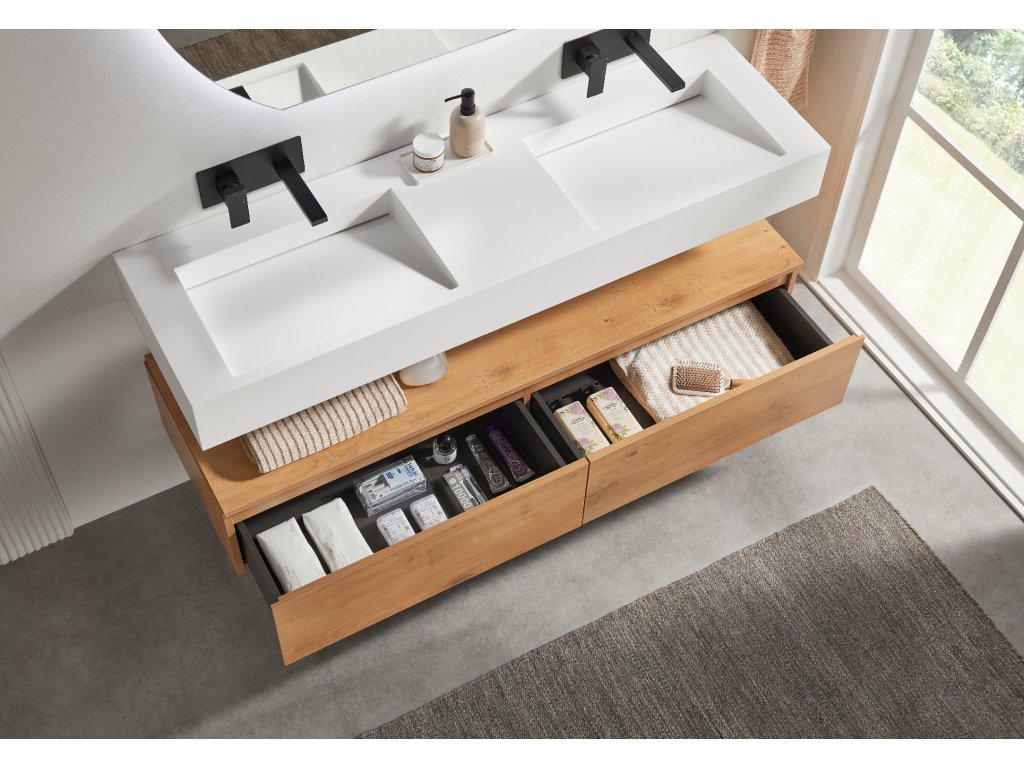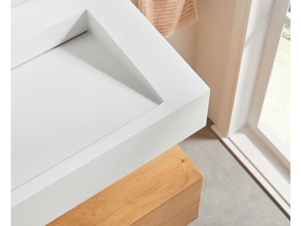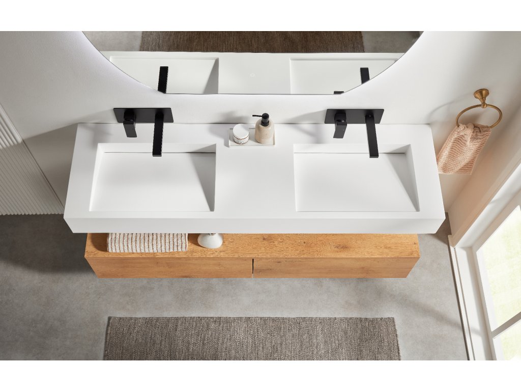 Umývadlá z liateho mramoru sú dodávané bez otvoru pre batériu. V prípade potreby si ho môžete jednoducho zhotoviť sami – napríklad vyvŕtaním. Vďaka tomu máte možnosť zvoliť si umiestnenie a typ batérie podľa vlastných predstáv.