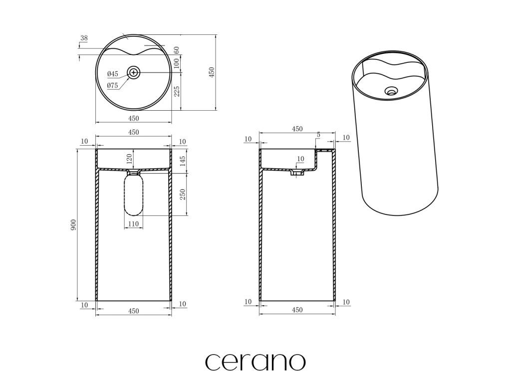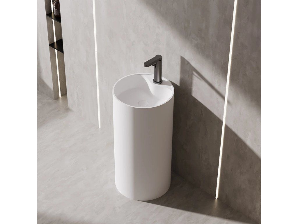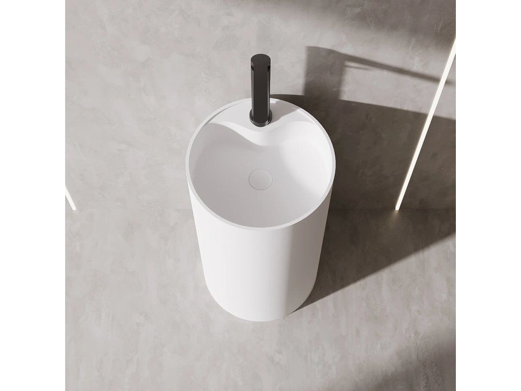 CERANO - Umývadlo z liateho mramoru Soho - voľne stojace - biela matná - Ø 45 x 90 cm