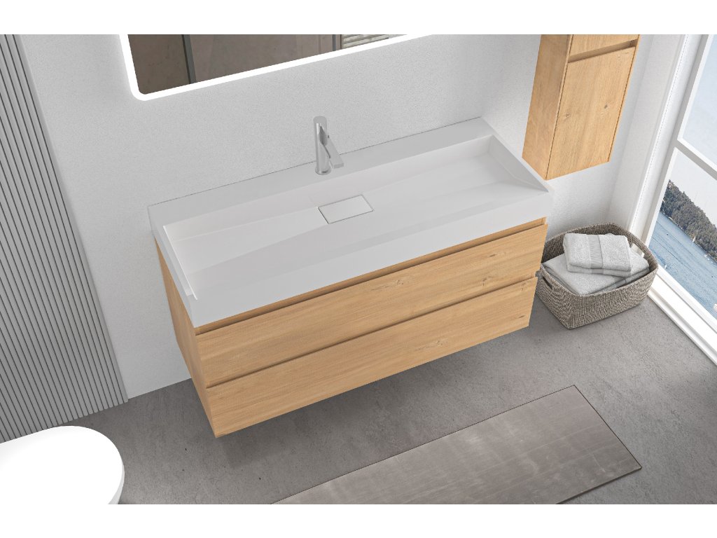 CERANO - Umývadlo z liateho mramoru Vita - nástenné aj na dosku - otvor pre batériu - biela matná - 100x46 cm