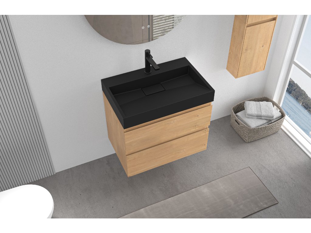 CERANO - Umývadlo z liateho mramoru Vita - nástenné aj na dosku - otvor pre batériu - čierna matná - 60x37 cm