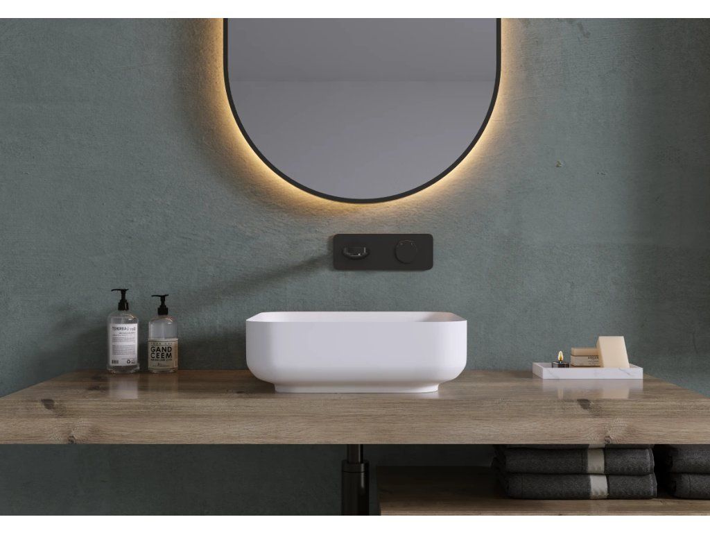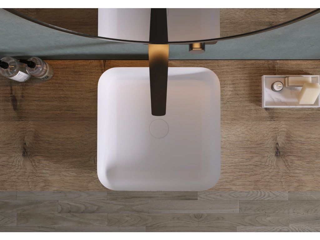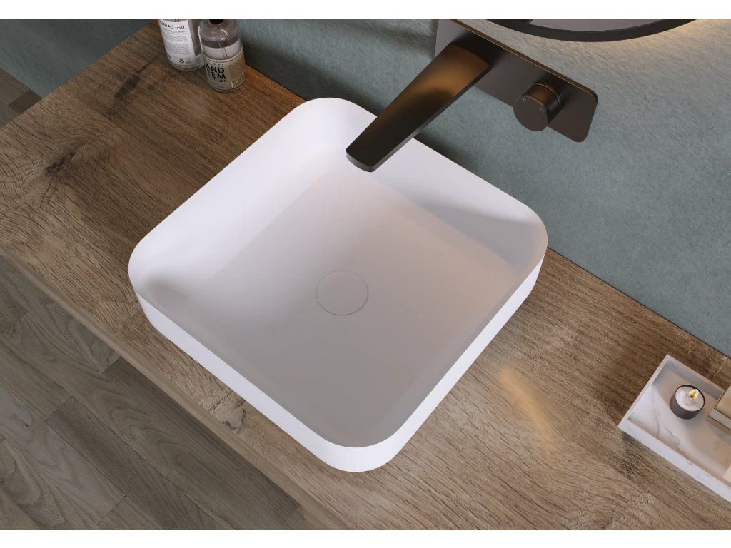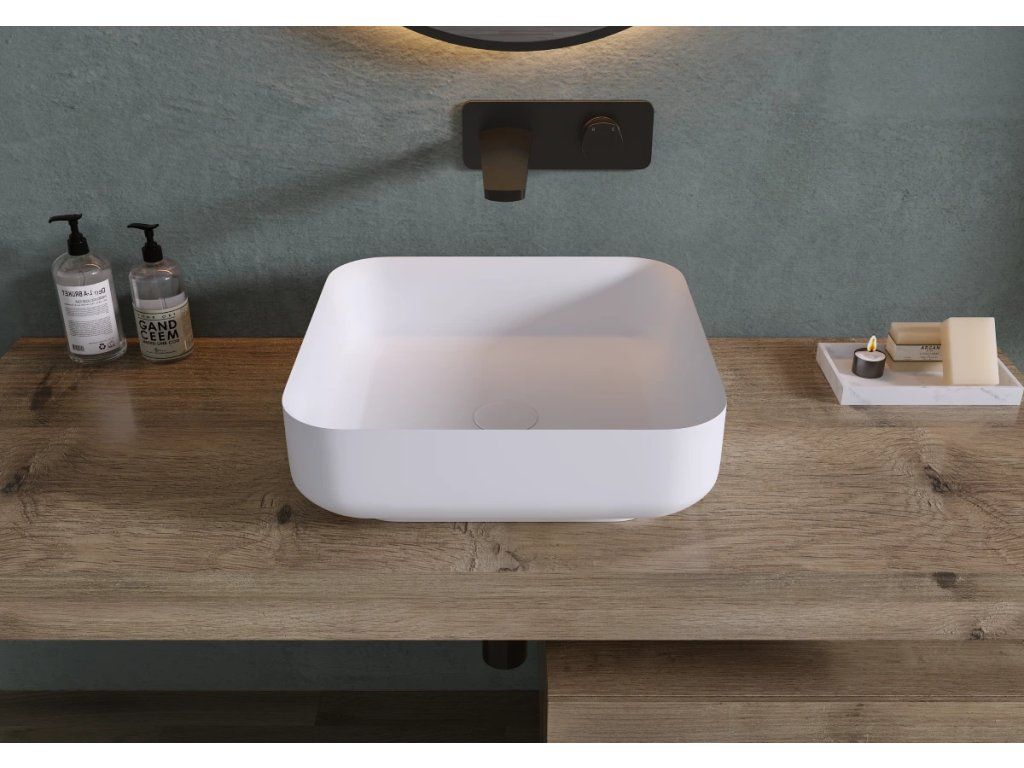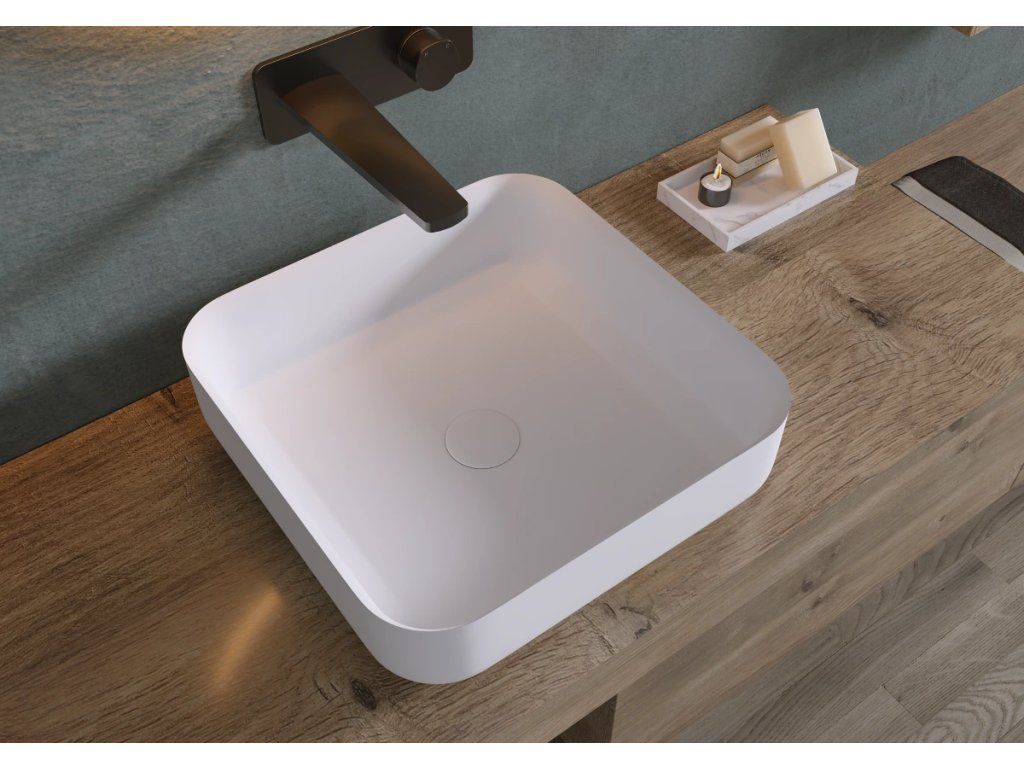 CERANO - Umývadlo z liateho mramoru Viva - na dosku - biela matná - 40x40 cm