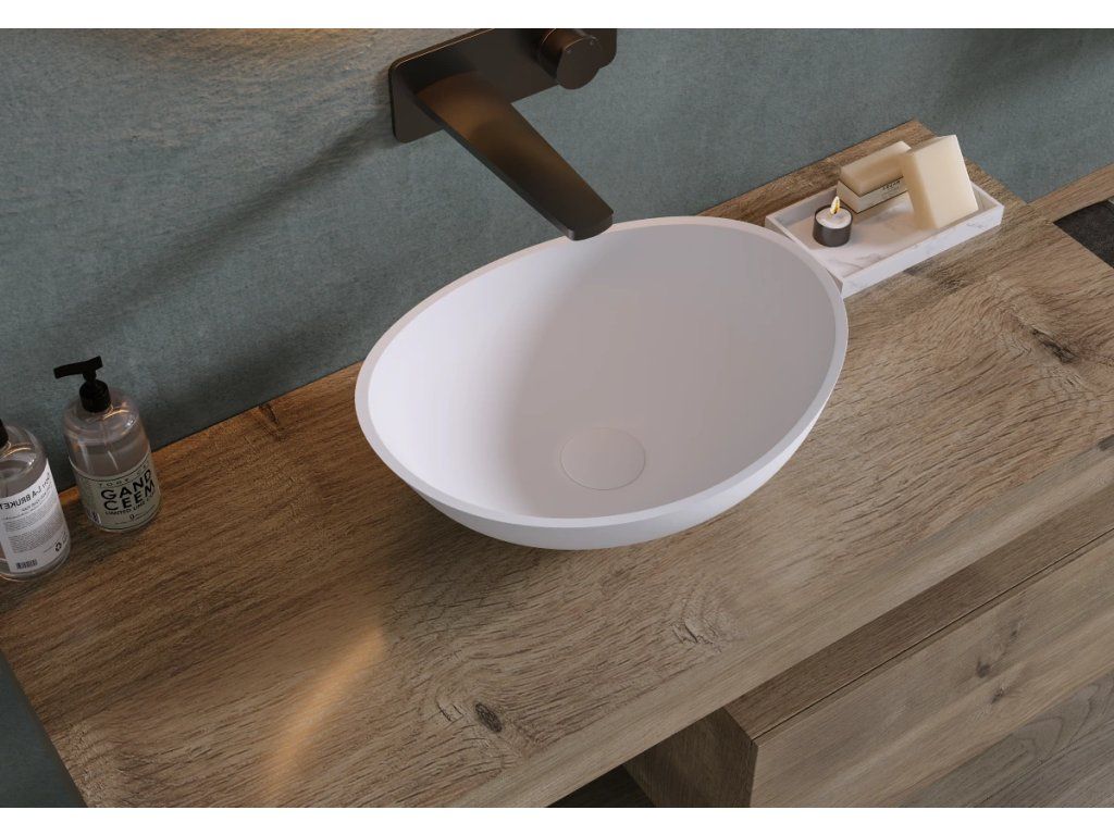 CERANO - Umývadlo z liateho mramoru Zara - na dosku - biela matná - 42x34 cm