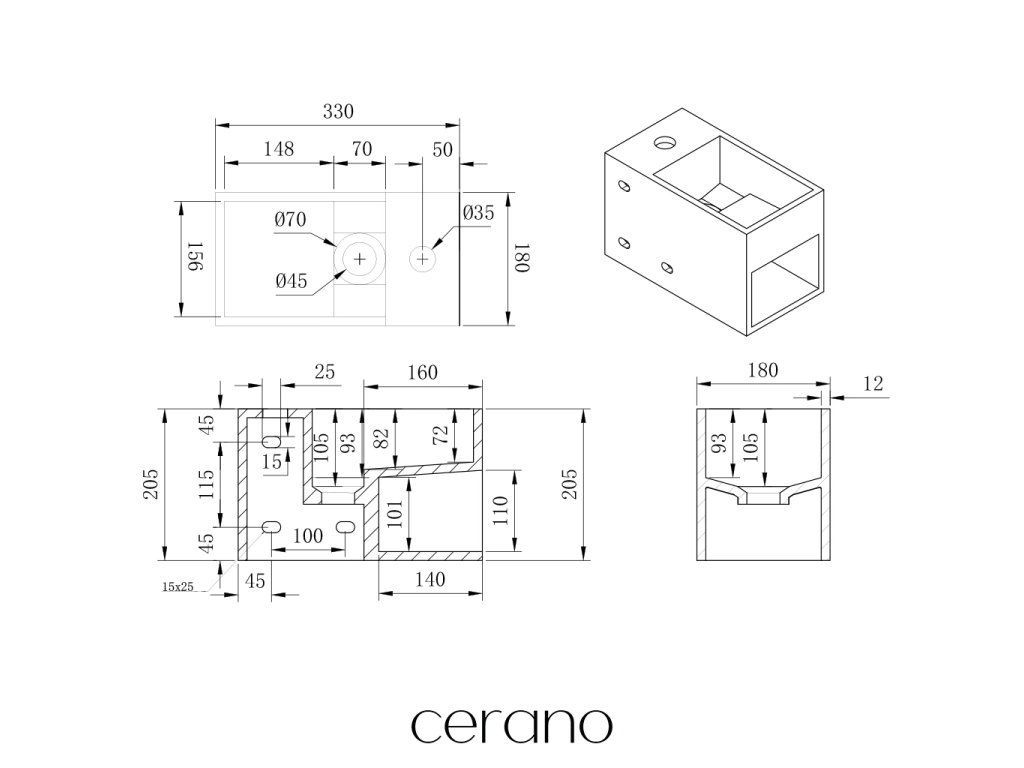 CERANO - Umývadlo z liateho mramoru Zeno, závesné pravé - biela matná - 33x18 cm