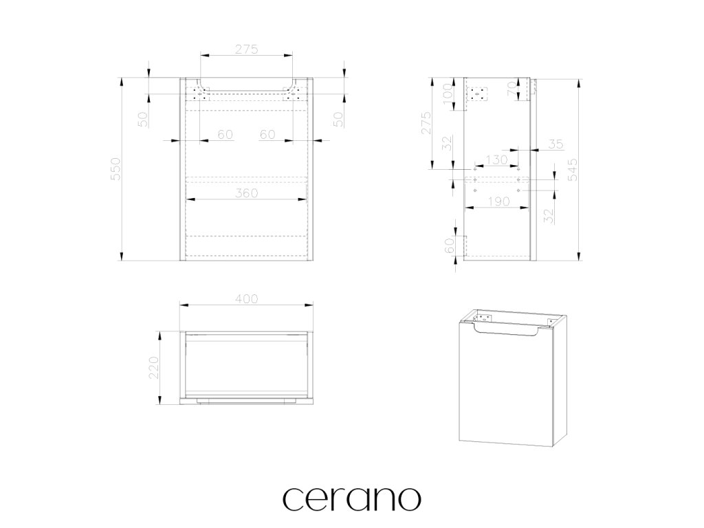 CERANO - Umývadlová skrinka pre WC Sora - biela matná - 40x22x55 cm