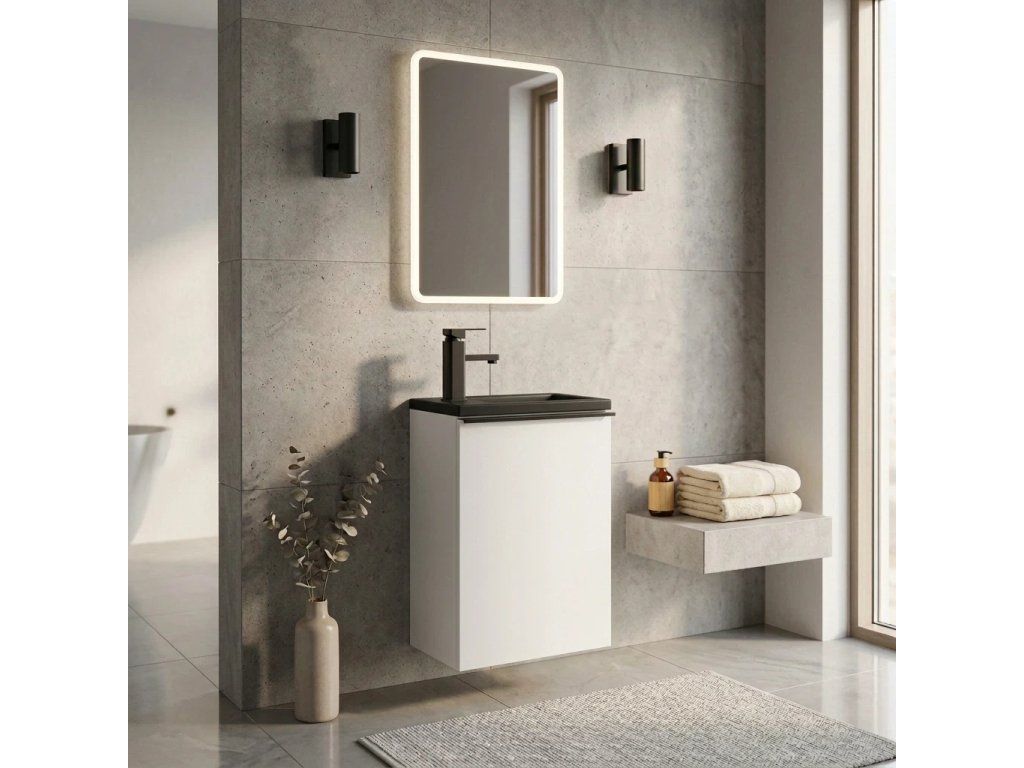 CERANO - Umývadlová skrinka pre WC Zola - biela matná + umývadlo z lit. Mramoru - čierna matná - 40x55x23, 5 cm