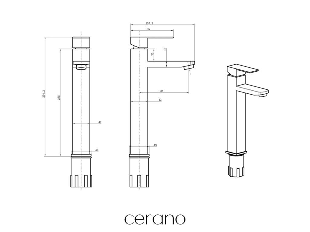 Batérie značky CERANO PROJECT sú vyrobené z kvalitnej mosadze, ktorá sa vyznačuje vysoko nehrdzavejúcimi vlastnosťami. Tie sú pri vodovodných batériách úplne zásadné. Ich životnosť a funkčnosť je tak maximálna a dlhodobá. Sú estetické, elegantné a podporujú vzhľad každej modernej kúpeľne.