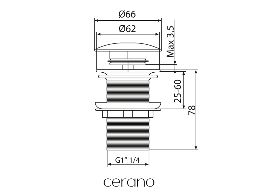 Kruhový výpust Click-Clack značky Cerano je veľmi praktický kúpeľňový doplnok, ktorý slúži na odtok vody z umývadiel alebo vaní.