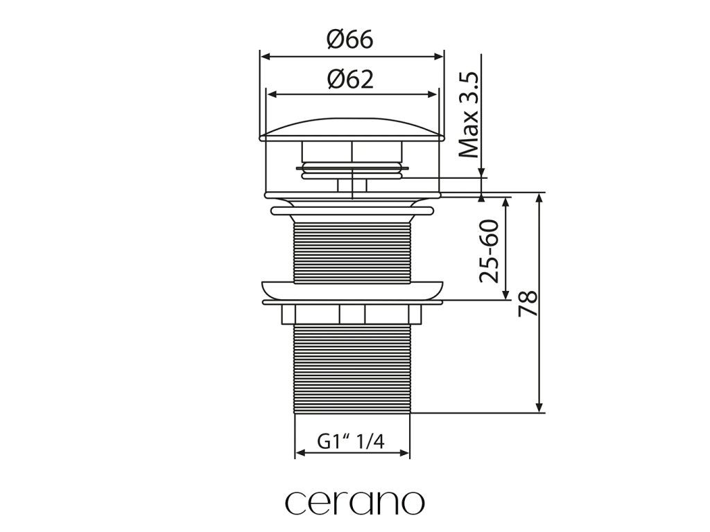 Kruhový výpust Click-Clack značky Cerano je veľmi praktický kúpeľňový doplnok, ktorý slúži na odtok vody z umývadiel alebo vaní.