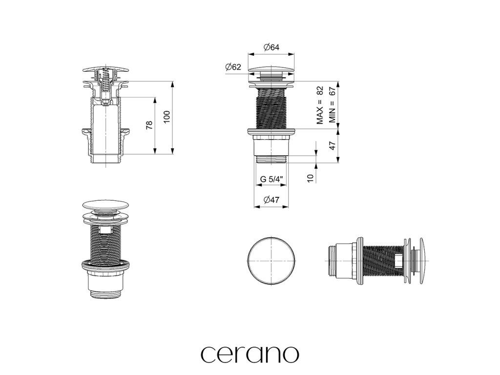 CERANO - Umývadlový výpust - 5/4“ click-clack s prepadom - plast - 67/82mm - biely lesklý