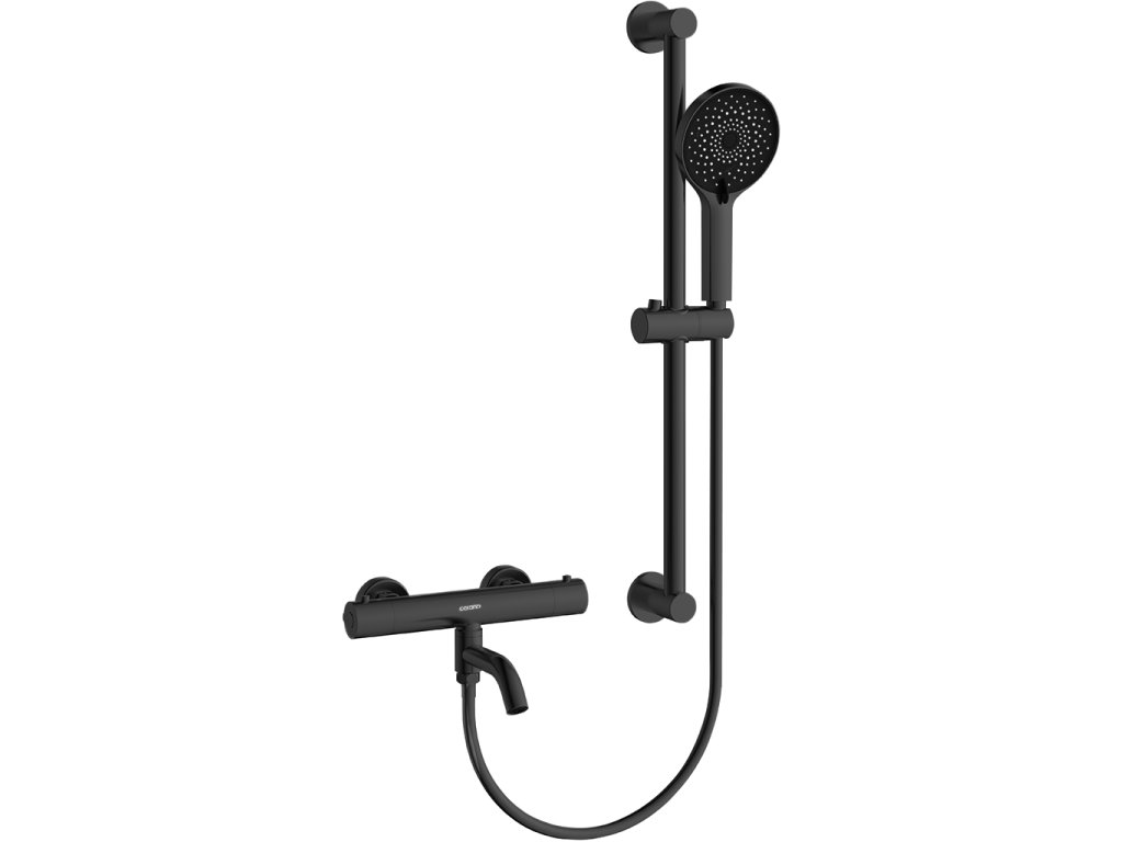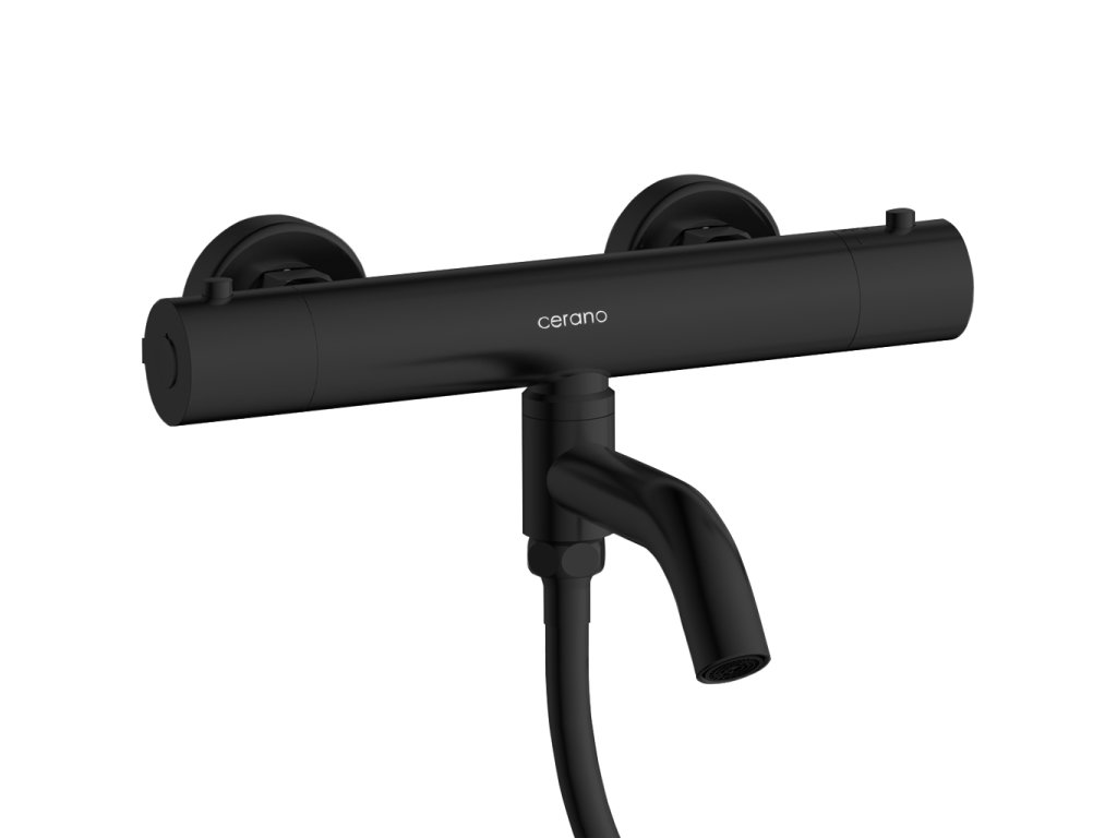 CERANO - Vaňová nástenná batéria Selma s príslušenstvom - termostatická - otočný výtok - čierna matná