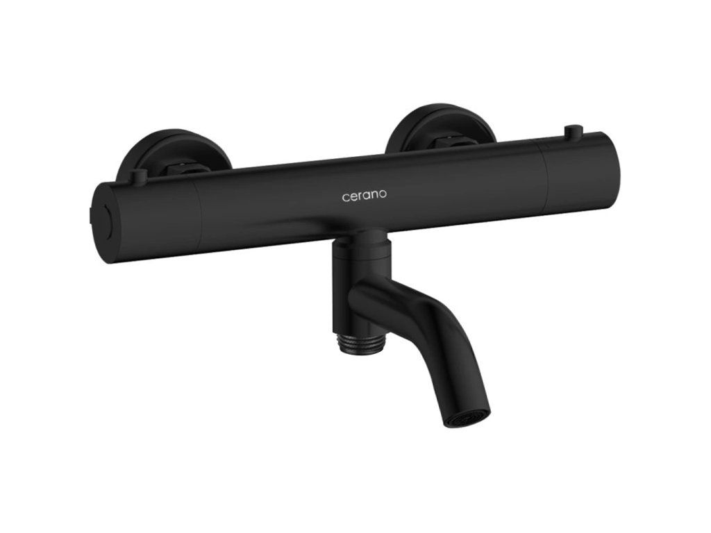 CERANO - Vaňová nástenná batéria Selma - termostatická - otočný výtok - čierna matná