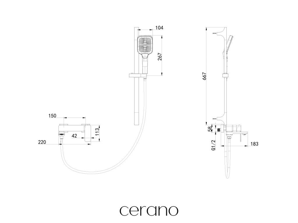 CERANO - Vaňová nástenná batéria Zenira s príslušenstvom - čierna matná