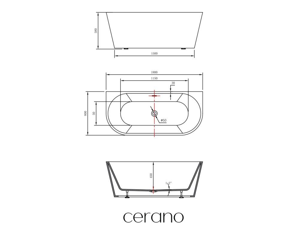 CERANO - Voľne stojaca akrylátová vaňa Bianco - biela lesklá - 180x80 cm