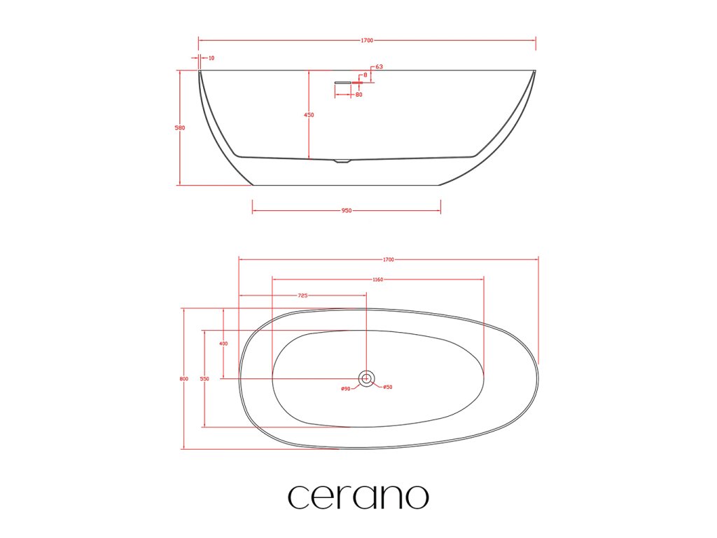 CERANO - Voľne stojaca akrylátová vaňa Unica - biela lesklá - 170x80 cm