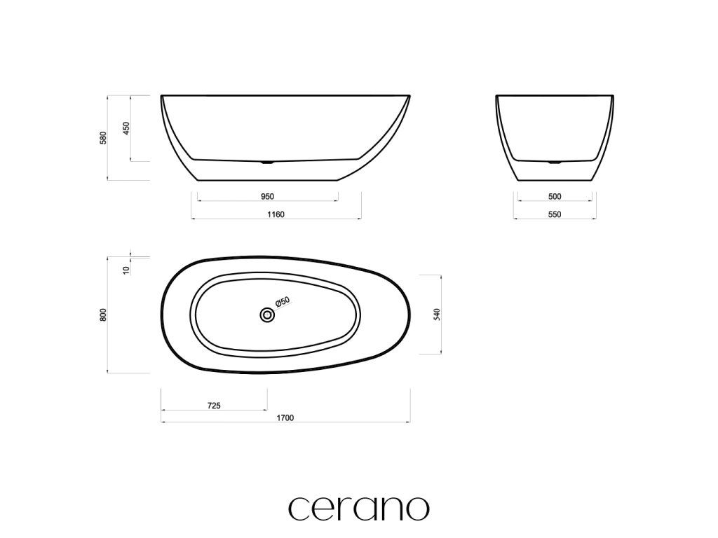 CERANO - Voľne stojaca akrylátová vaňa Unica - biela matná - 170x80 cm