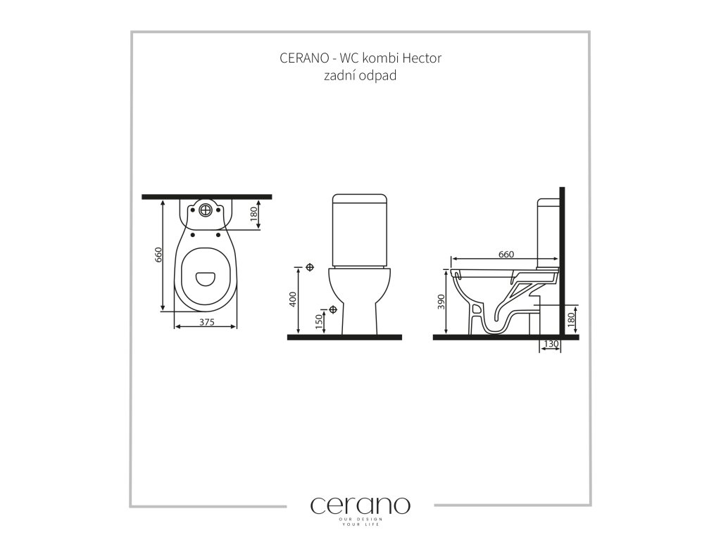 CERANO - WC kombi Hector - zadný odpad - biela lesklá - 37,5x66 cm