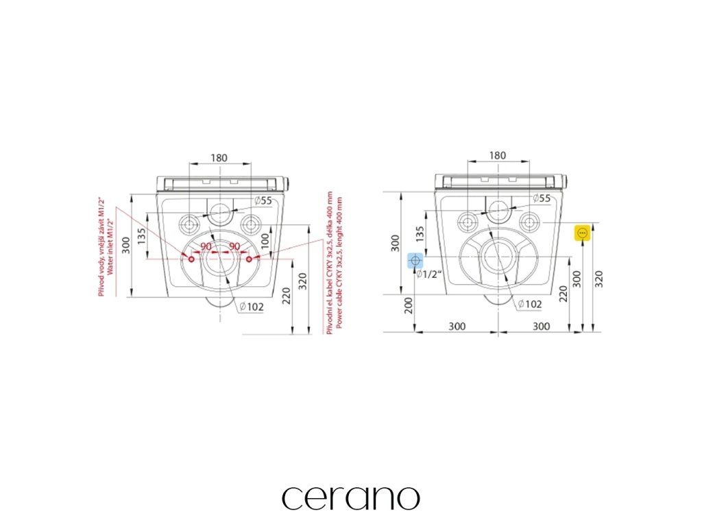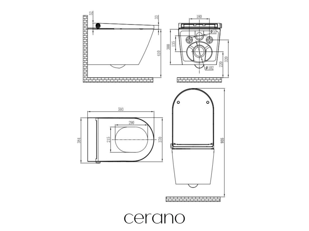 Závesné WC misy Cerano sa ľahko montujú a vďaka štandardnej rozteči uchytenia, sú kompatibilné s modulmi Cerano, ako aj od značiek ako Geberit, Grohe, Alcadrain, Jika, Tece ai.
