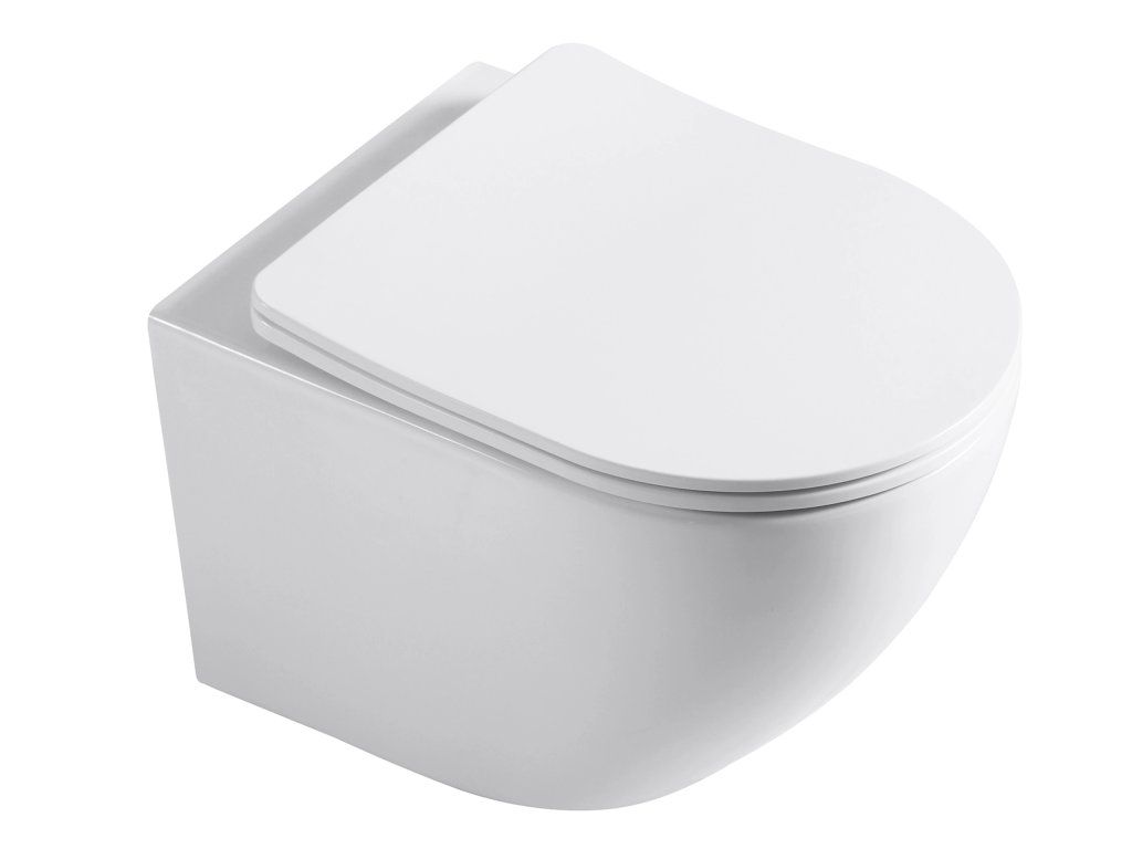 CERANO - WC závesné Verde, Rimless + Slim/UF sedátko - biela lesklá - 49x36 cm