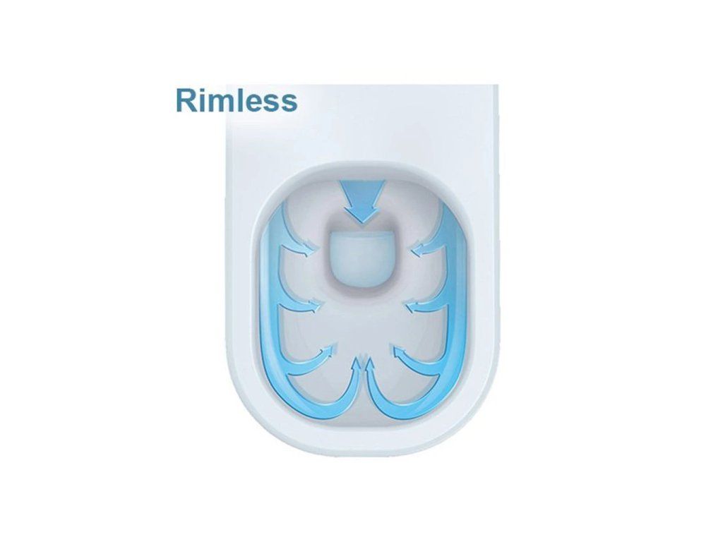WC misy s týmto systémom nemajú hornú obvodovú hranu (tzv.rim). Voda je rozvádzaná rovnomerne okolo celej misy, čo umožňuje efektívne spláchnutie s výrazne menším množstvom vody. Vďaka neprítomnosti horného okraja, ktorý majú staršie typy wc, sú prístupnejšie všetky časti misy na čistenie a nedochádza k akumulácii nečistôt a baktérií, čo prispieva k lepšej hygiene.