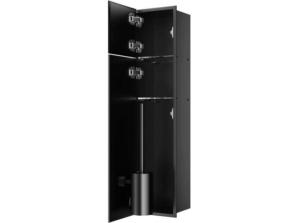 CERANO - Zápustná skrinka na toaletný papier Inova - 2 police - čierna matná - 76,8x18,2x15,3 cm