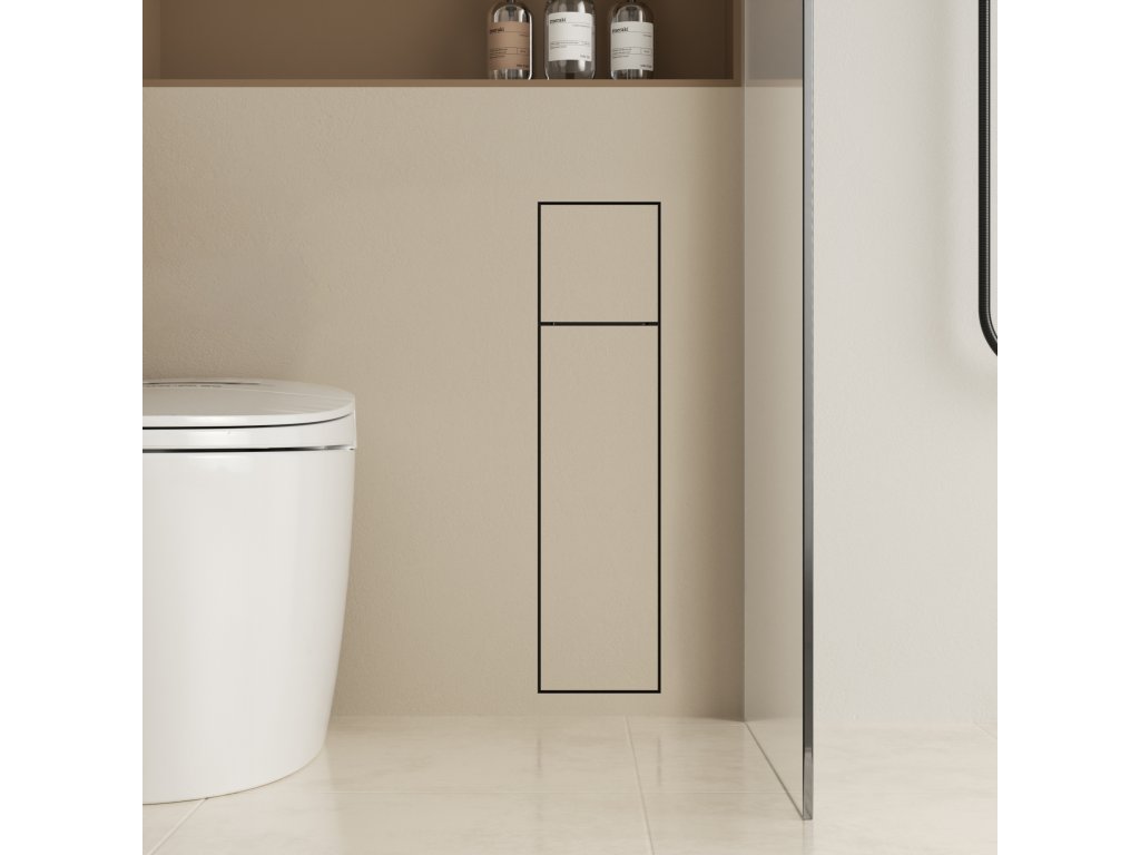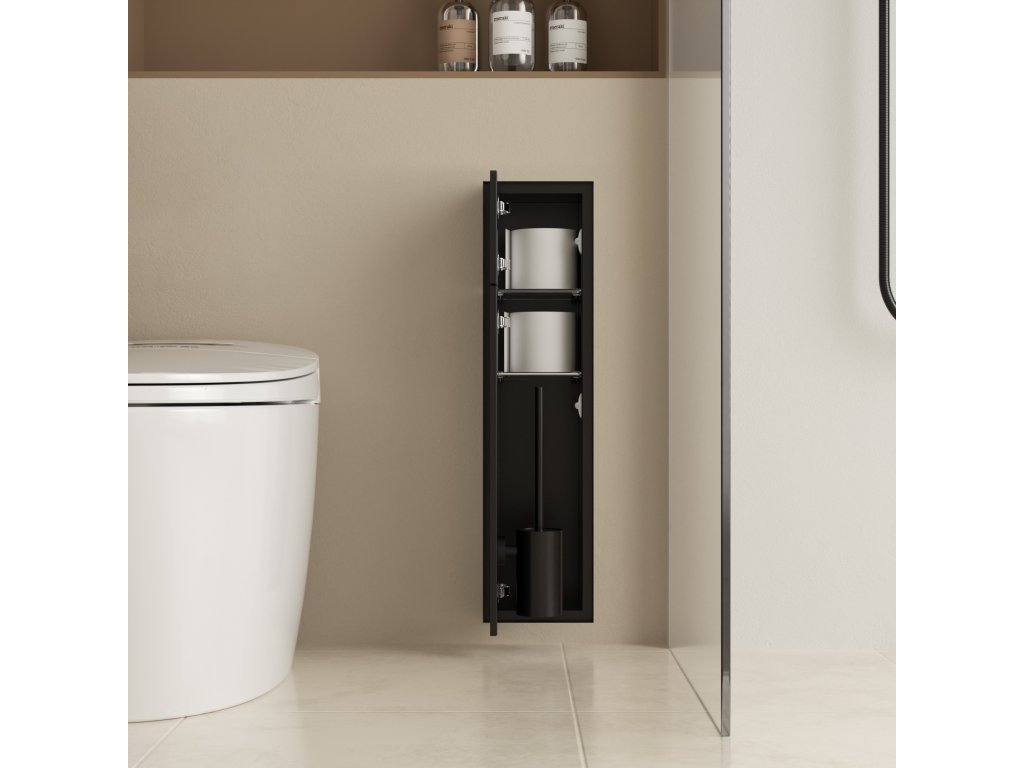 CERANO - Zápustná skrinka na toaletný papier Inova - na obloženie - 2 police - čierna matná - 78,2 × 19,6 × 16 cm
