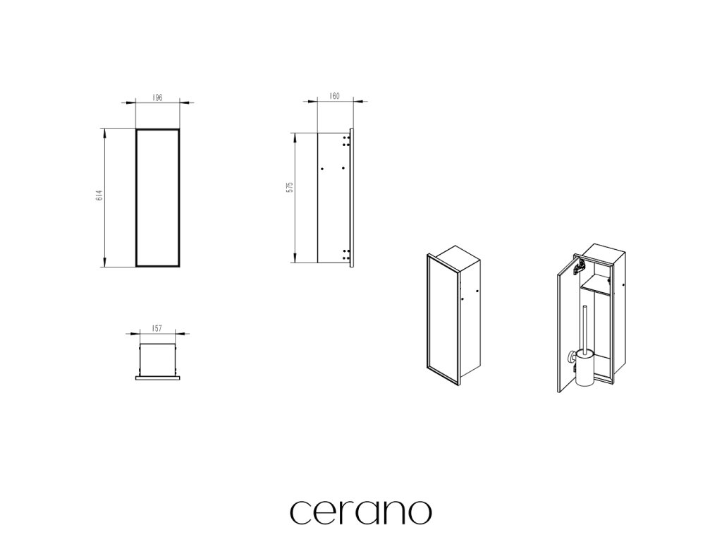 CERANO - Zápustná skrinka na toaletný papier Inovácia - na obloženie - 1 polica - čierna matná - 61,4x19,6x16 cm