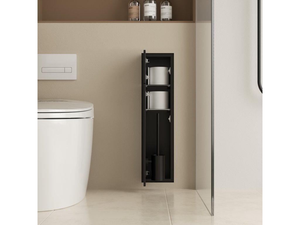 CERANO - Zápustná skrinka na toaletný papier Inovácia - na obloženie - 2 police - čierna matná - 78,2x19,6x16 cm