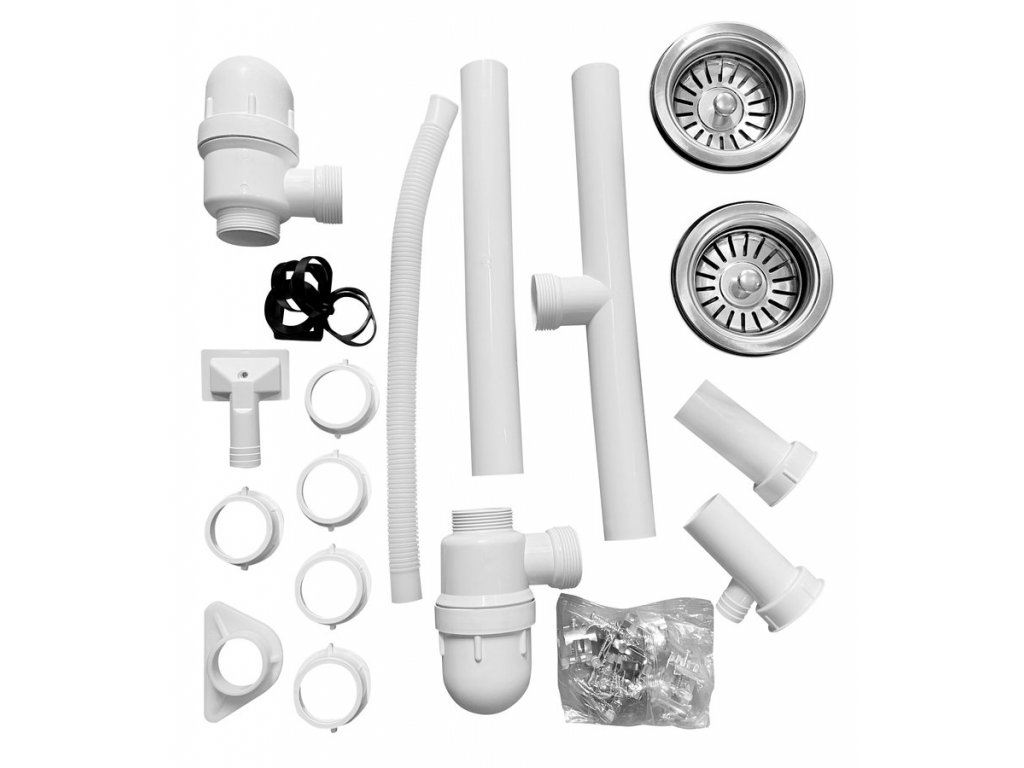 Drezový sifón s prepadom, vrátane 2 piliet, podložka batérie - pre dvojdrezy