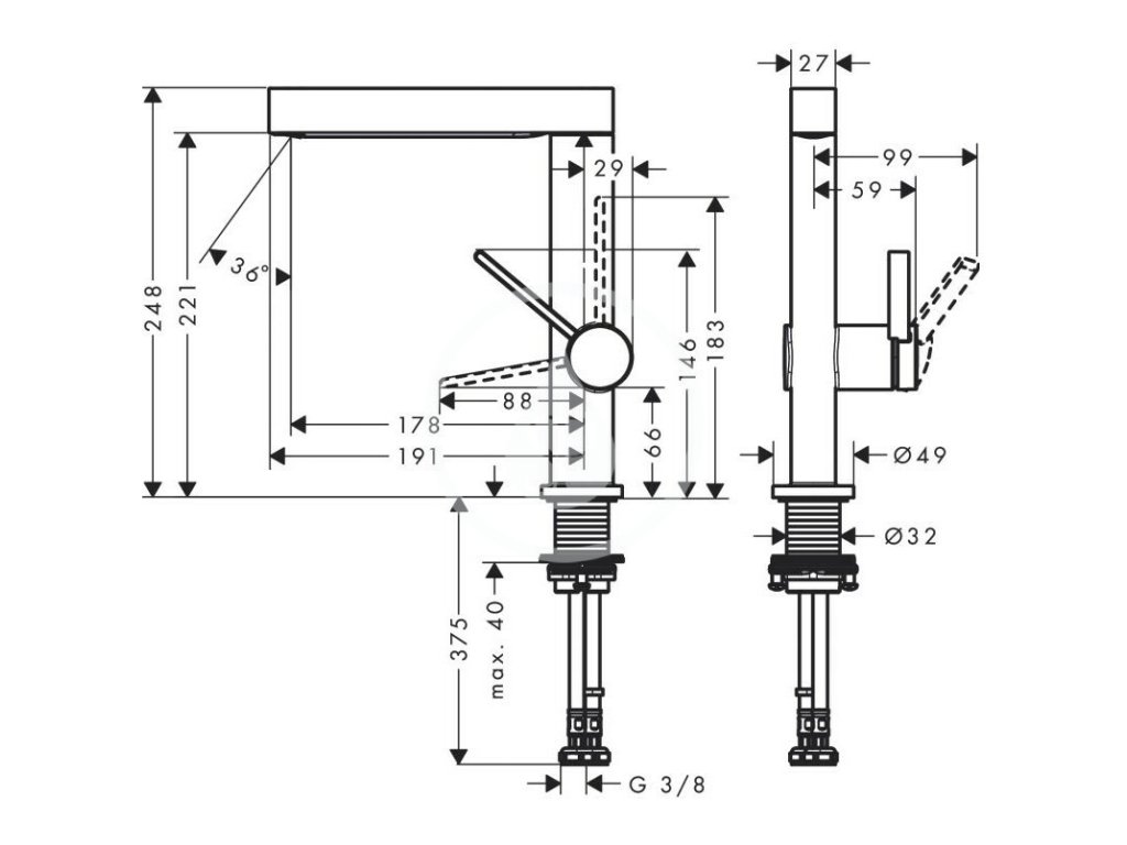 Stojanková umývadlová batéria Finoris 230 s otočným výtokom