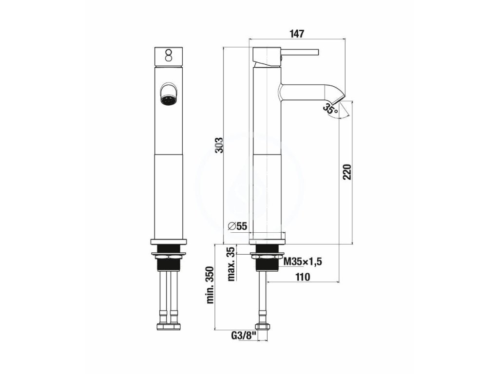 Vysoká umývadlová stojanková batéria