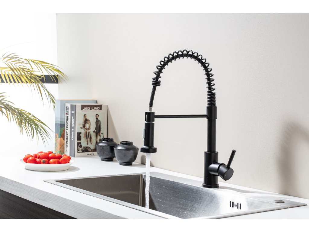 NIORO - Drezová stojanková batéria Daniela - výsuvná spŕška - čierna matná - 2. akosť
