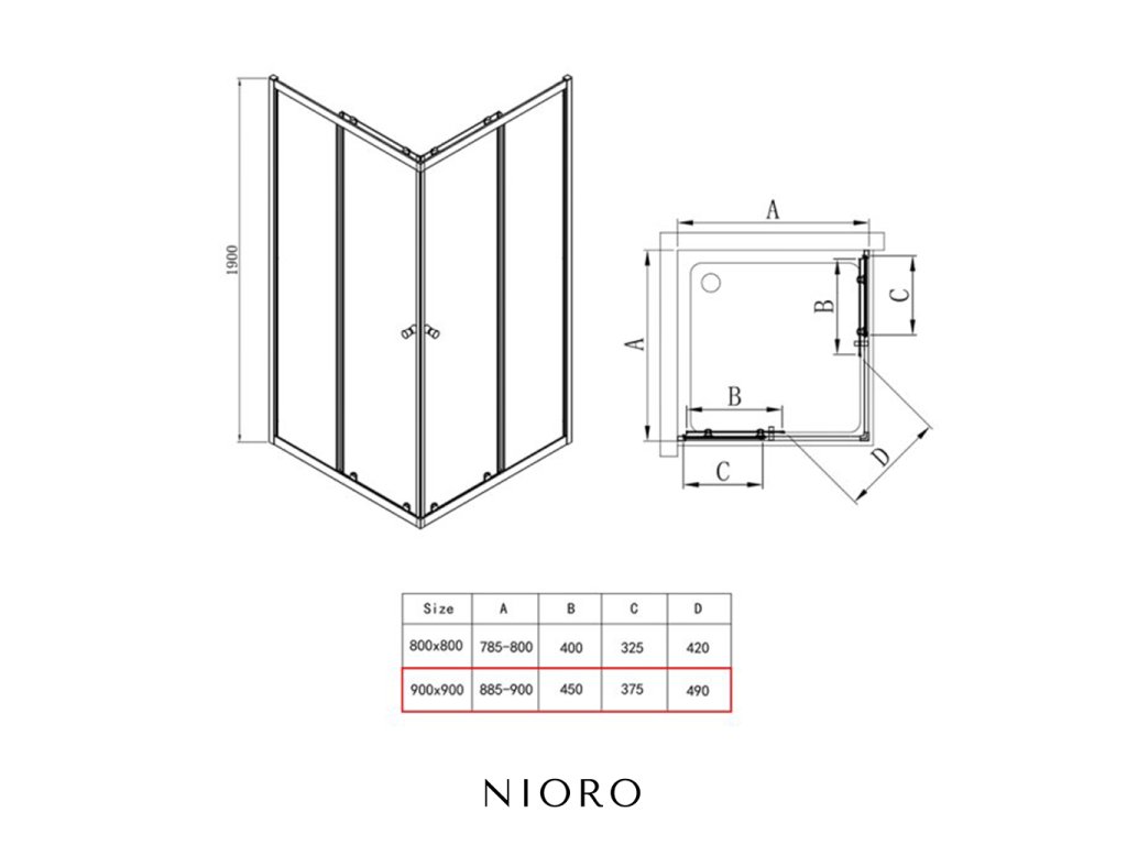 NIORO - Sprchovací kút Fabrizio L/P - čierna matná, transparentné sklo - 90x90x190 cm - posuvný - ROZBALENÉ