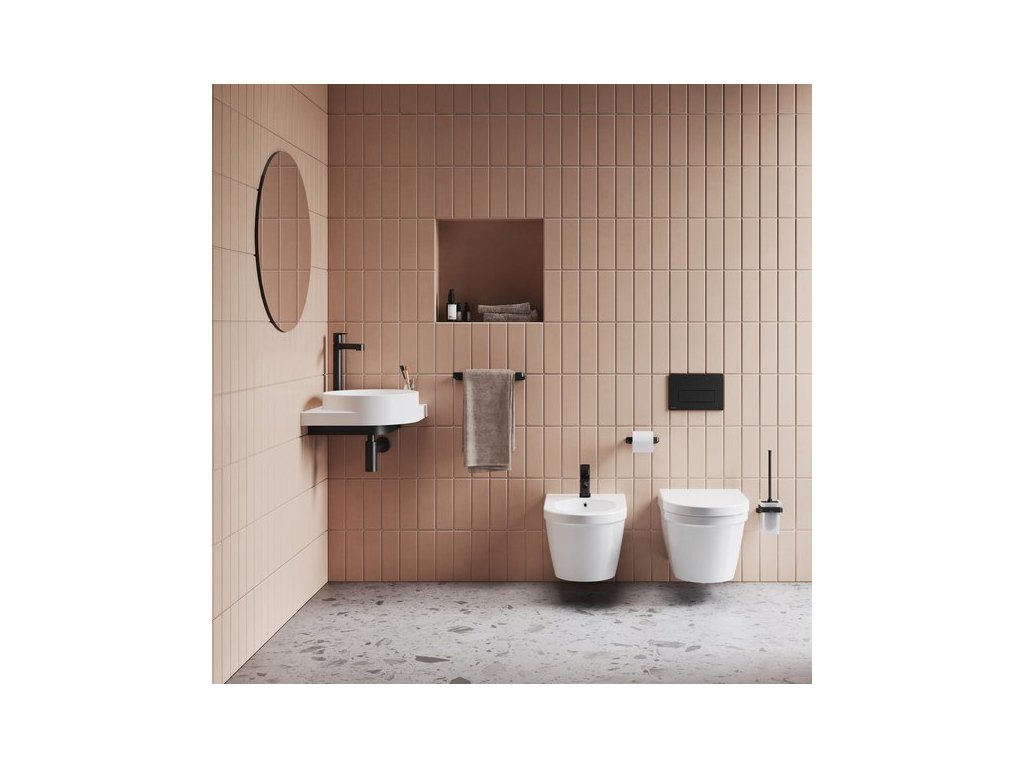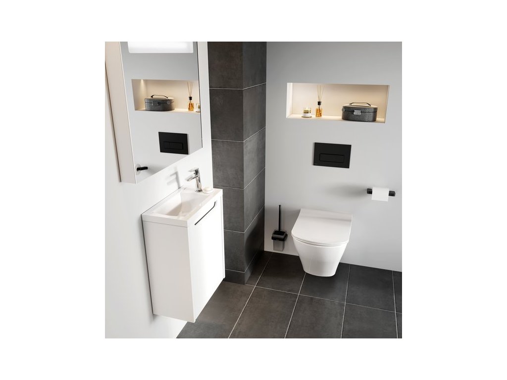 Ovládacie tlačidlo splachovania Uni Slim je určené pre závesné WC s predstenovým inštalačným modulom. Plastové tlačidlo s povrchovou úpravou odolnou proti poškriabaniu ponúkame v čiernej matnej farbe. Mechanizmus je integrovaný do steny, takže tlačidlo vystupuje nad obklad iba 5 mm. Súprava na skrytú montáž je súčasťou balenia.