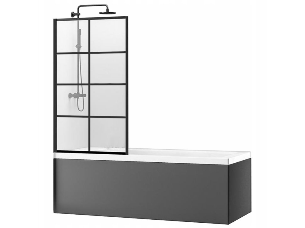 Rea - Pevná vaňová zástena Lagos-1 - čierna / transparentná - 70x140 cm