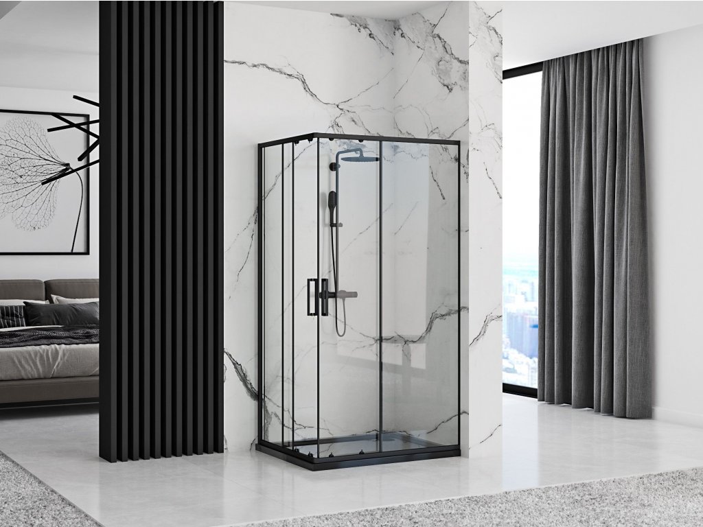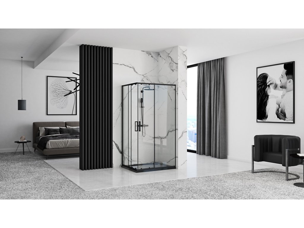 Rea - Sprchovací kút Punto - čierna/transparentná - 80x100 cm - L/P