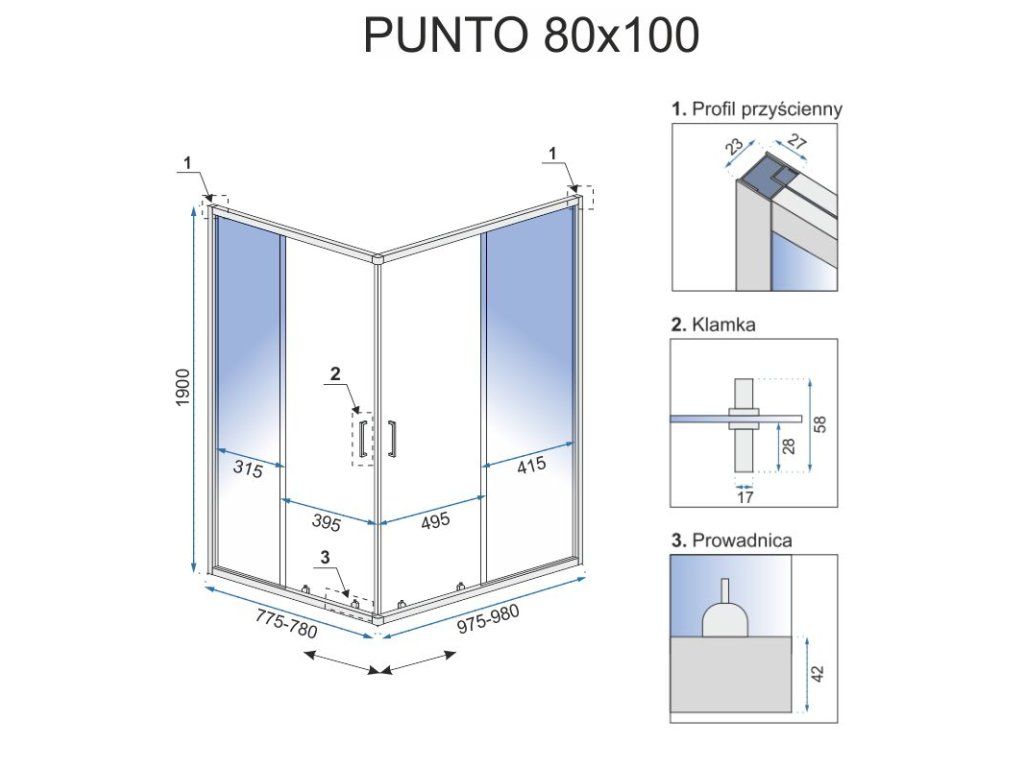Dvere modelu Punto majú posuvný systém, ktorý umožňuje ľahké otváranie a zatváranie dverí. Systém pántov je navrhnutý tak, aby po celú dobu životnosti fungoval dokonale hladko. Mimoriadne premyslené riešenie pántov spolu s použitým tesnením zaisťuje 100% tesnosť a spoľahlivosť pri užívaní.