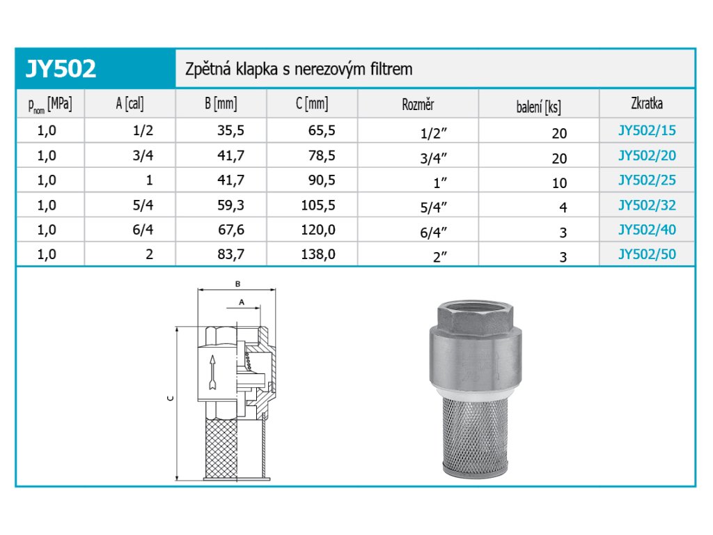 Spätná klapka s nerezovým filtrom. Určené iba na studenú voduDodatočné parametre
