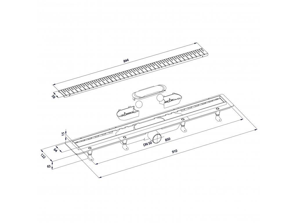 Sprchový odtokový žľab so sifónom, nerezovým roštom, L-910, DN50, čierna mat